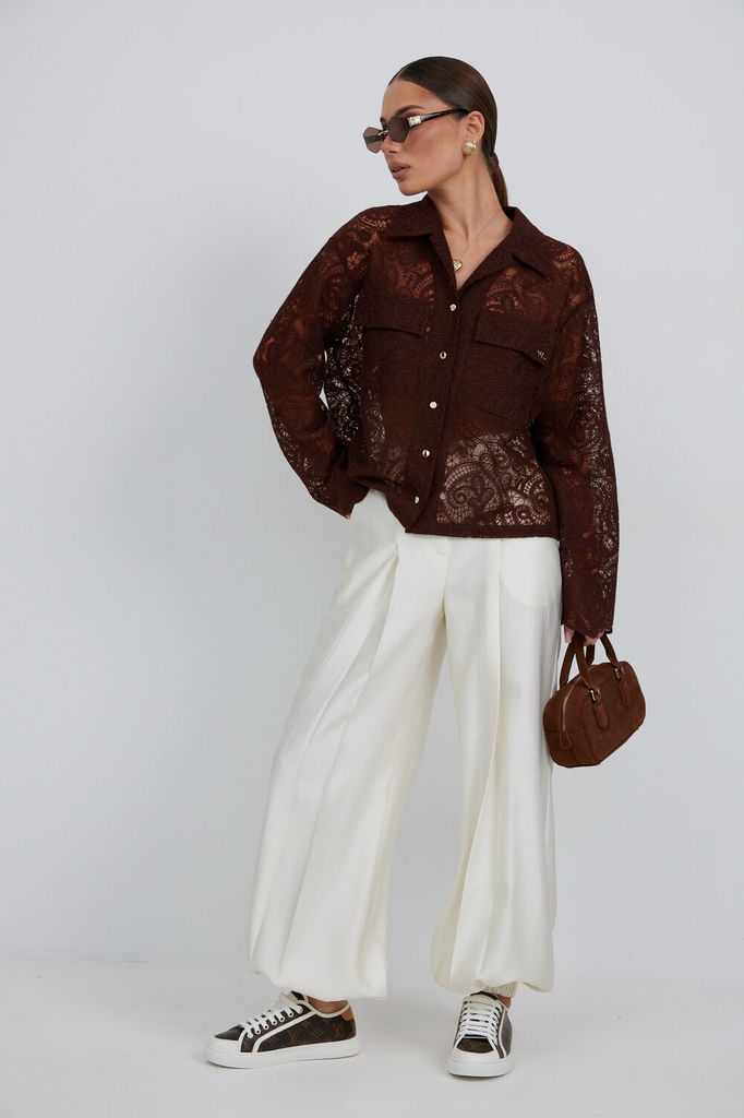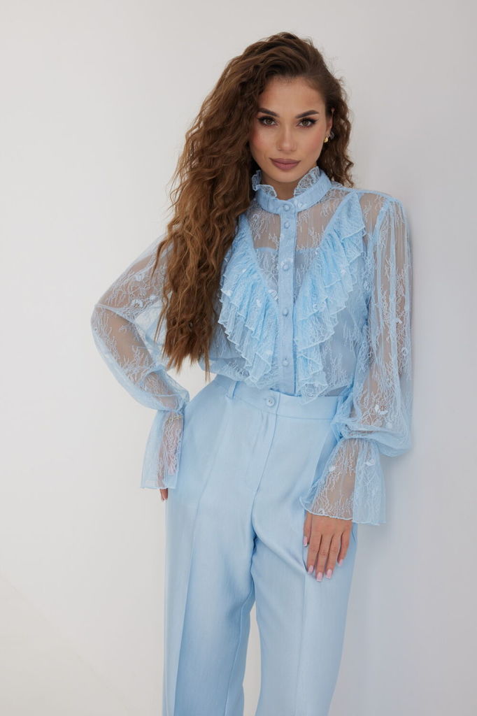 Состав: ПЭ-100%; Сезон: Весна Рост: 164 Страна бренда: Беларусь Состав: ПЭ-100%; Блузка женская свободного силуэта, из легчайшего кружева. По переду подрез с воланами. Застежка на планку с декоративны... Показать описаниеми пуговицами. Воротник - стойка с небольшой рюшей. Рукав длинный объемный со сборкой в верхней части, в нижней части рукав собран на эластичную тесьму и образует волан. В комплект с блузкой предлагается топ на регулируемых бретелях. Длина блузки 60 см. Длина топа по спинке - 34 см. Длина рукава с учетом напуска - 69 см. Измерения по готовому изделию: 44 р-р: ОГ - 112 см., ОТ - 108 см., ОБ - 114 см. ; Топ ОГ - 92 см., ОБ - 92 см., ОТ - 92 см. 46 р-р: ОГ - 116 см., ОТ - 112 см., ОБ - 118 см.; Топ ОГ - 96 см., ОБ - 96 см., ОТ - 96 см. 48 р-р: ОГ - 120 см., ОТ - 116 см., ОБ - 122 см.; Топ ОГ - 100 см., ОБ - 100 см., ОТ - 100 см. 50 р-р: ОГ - 124 см., ОТ - 120 см., ОБ - 126 см.; Топ ОГ - 104 см., ОБ - 104 см., ОТ - 104 см. 52 р-р: ОГ - 128 см., ОТ - 124 см., ОБ - 130 см.; Топ ОГ - 108 см., ОБ - 108 см., ОТ - 108 см.