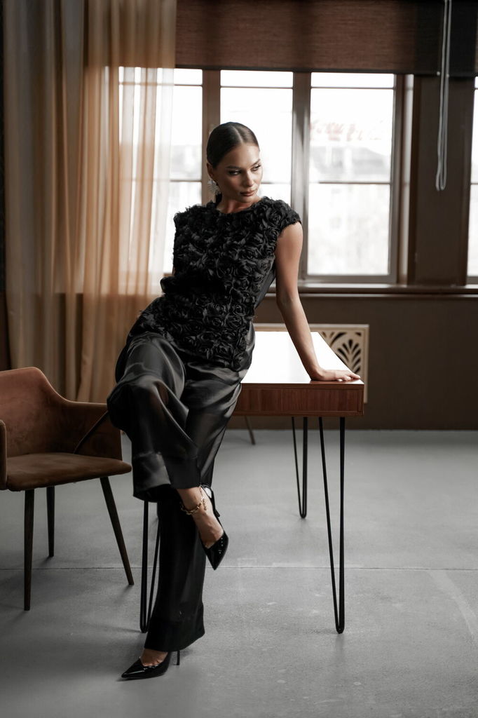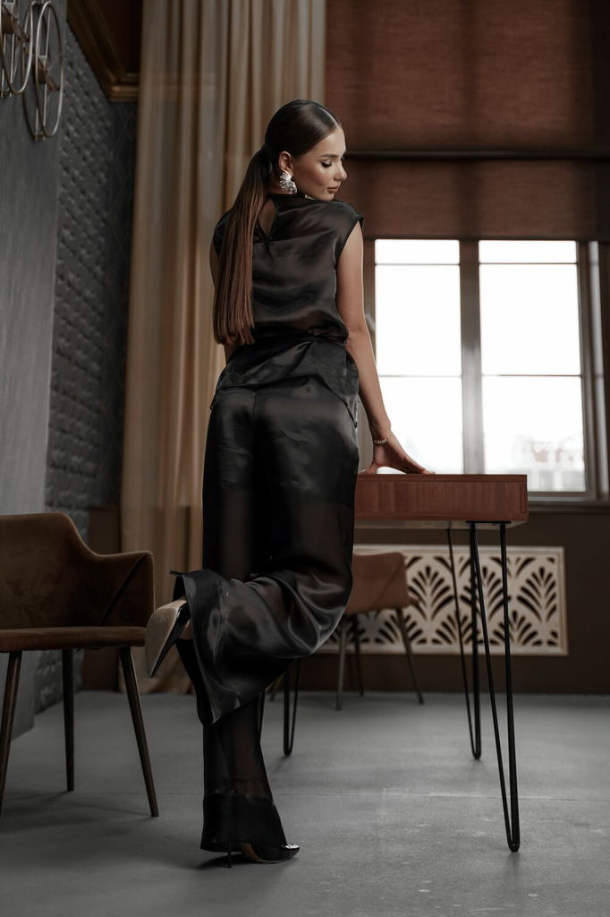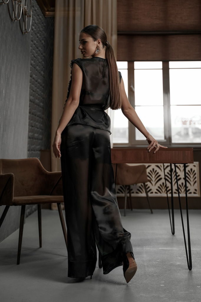 Состав: Брюки- ПЭ-100%; Подкладка- ПЭ-100%; Сезон: Осень-Зима Рост: 164 Страна бренда: Беларусь Состав: Брюки: ПЭ-100%; Подкладка: ПЭ-100%; Брюки из нарядной полупрозрачной ткани «органза», прямые, ши... Показать описаниерокие. Средняя посадка, пояс притачной, застежка спереди на молнию и декоративную пуговицу. Брюки с глубокими складками по переду. Брюки на подкладке в виде шорт. Длина по боковому шву - 107 см. Длина по шаговому шву - 81 см. Измерения по готовому изделию: 44 р-р: ОТ - 84 см., ОБ - 108 см. 46 р-р: ОТ - 88 см., ОБ - 112 см. 48 р-р: ОТ - 92 см., ОБ - 116 см. 50 р-р: ОТ - 96 см., ОБ - 120 см.