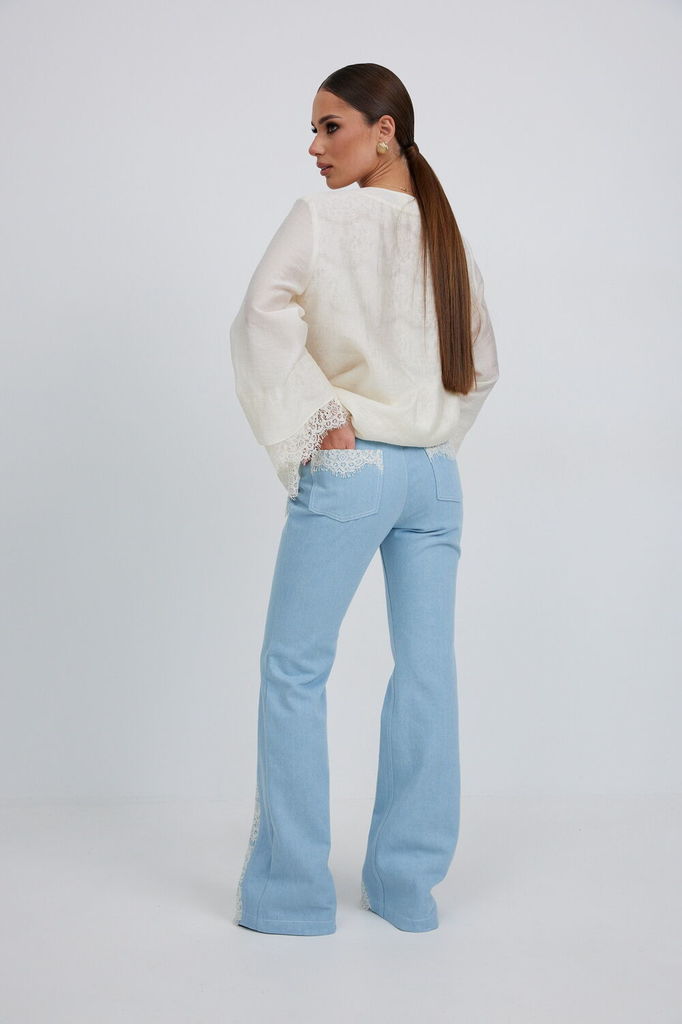 Состав: Хлопок-100%; Сезон: Лето Рост: 164 Страна бренда: Беларусь Состав: Хлопок-100%; Брюки из джинса, прилегающего силуэта, слегка расклешенные к низу. Средняя посадка, пояс притачной, застежк... Показать описаниеа спереди на молнию и пуговицу. По переду боковые карманы, вертикальные швы заканчиваются вставкой из кружева, сзади под кокеткой накладные карманы с кружевной отделкой. Длина по боковому шву - 107 см. Длина по шаговому шву - 82 см. Измерения по готовому изделию: 44 р-р: ОТ - 76 см., ОБ - 96 см. 46 р-р: ОТ - 80 см., ОБ - 100 см. 48 р-р: ОТ - 84 см., ОБ - 104 см. 50 р-р: ОТ - 88 см., ОБ - 108 см. 52 р-р: ОТ - 92 см., ОБ - 112 см.