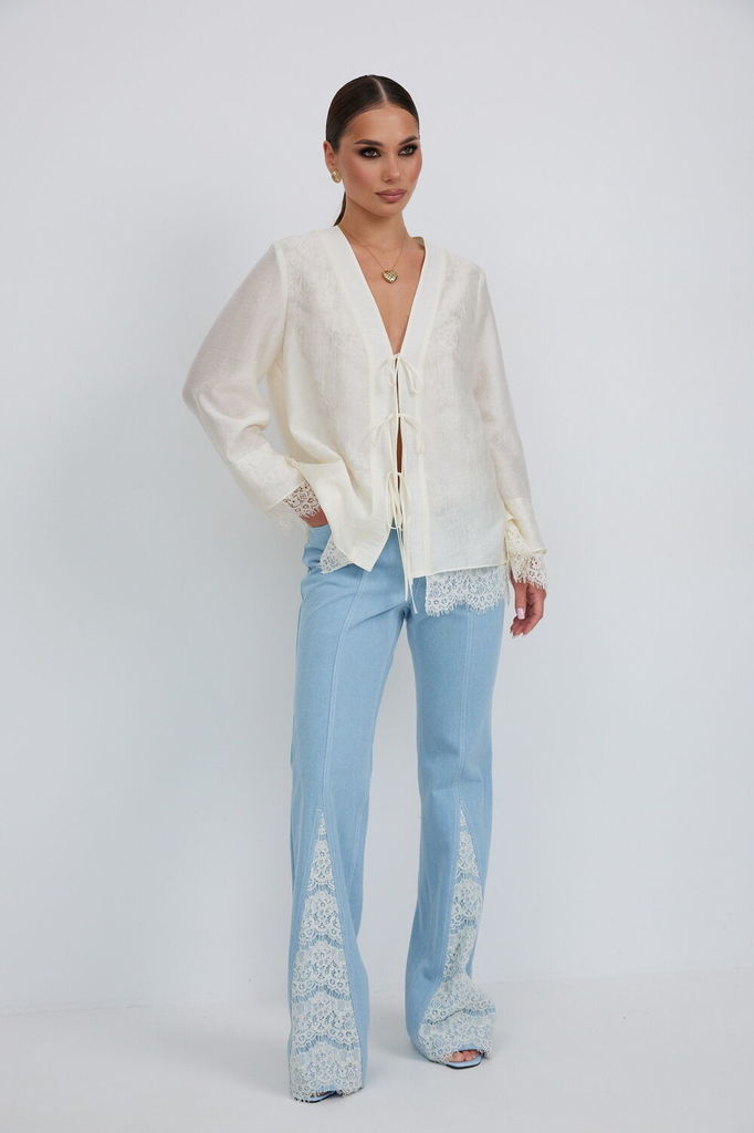 Состав: Блуза- ПА-15%; Тенсел-85%; Подкладка- ПЭ-100%; Сезон: Лето Рост: 164 Страна бренда: Беларусь Состав: Блуза: ПА-15%; Тенсел-85%; Подкладка: ПЭ-100%; Блузка женская свободного силуэта, из полупр... Показать описаниеозрачной вуали. Спинка и перед на кружевной подкладке. Застежка на планку с тремя завязками. Рукав втачной длинный расширенный книзу, по низу рукава кружевная широкая манжета, имитирующая многослойность. Длина блузки С кружевом : 44-48 р-р. - 70 см. 50-52 р-р. - 72 см. Длина рукава С кружевом - 60 см. Измерения по готовому изделию: 44 р-р: ОГ - 106 см., ОБ - 112 см. 46 р-р: ОГ - 110 см., ОБ - 116 см. 48 р-р: ОГ - 114 см., ОБ - 120 см. 50 р-р: ОГ - 118 см., ОБ - 124 см. 52 р-р: ОГ - 122 см., ОБ - 128 см.