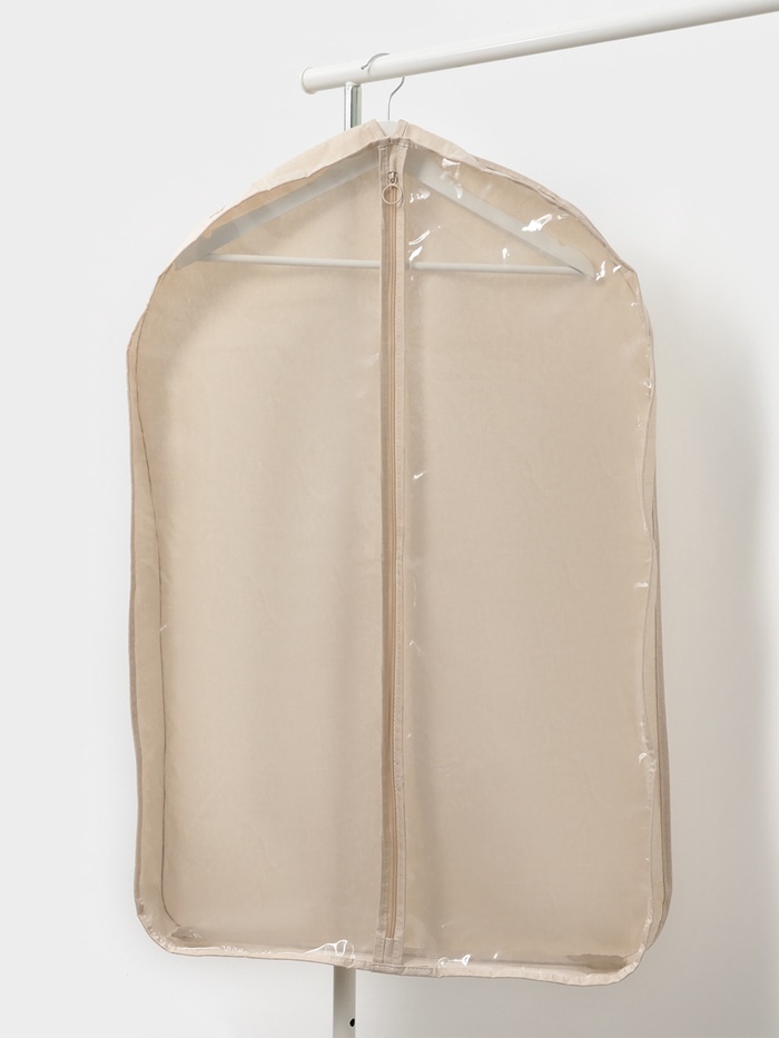 Чехол для хранения одежды на молнии — это практичное решение для защиты вещей от пыли, влаги и повреждений. Изделие выполнено в нейтральном бежевом оттенке, который легко впишется в интерьер шкафа или... Показать описание гардеробной. Прочный флизелиновый материал обеспечивает долговечность и сохраняет форму даже при длительном использовании. Особенности * Удобный размер 90?60 см подходит для хранения пальто, курток, костюмов и других вещей. * Молния по всей длине обеспечивает лёгкий доступ к содержимому и надёжную защиту. * Флизелин — лёгкий, но плотный материал, который не мнётся и не рвётся. * Чехол сохраняет вещи в идеальном состоянии, предотвращая появление пыли и влаги. * Компактно складывается для хранения в шкафу или на полке. Почему этот чехол — must-have для гардероба? Чехол для одежды — это не просто аксессуар, а необходимость для тех, кто ценит порядок и заботится о своих вещах. Он подходит для сезонного хранения, поездок или организации пространства в шкафу. Благодаря универсальному дизайну и функциональности, изделие станет незаменимым помощником в поддержании чистоты и аккуратности вашего гардероба. Комплектация * Чехол для одежды - 1 шт.