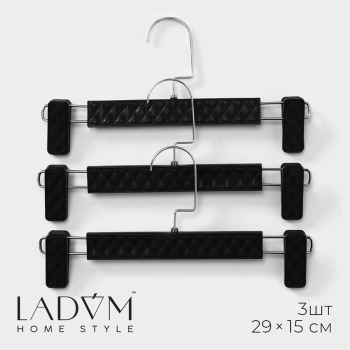 Вешалки для брюк и юбок LaDо?m Eliot, 29?15 см, 3 шт., с зажимами, чёрныеВопросы по товару