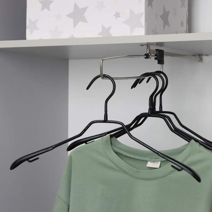 Плечики - вешалки для одежды Доляна, 38?40 см, многоуровневая, съёмные вешалки, антискользящее покрытие, чёрныеВопросы по товару