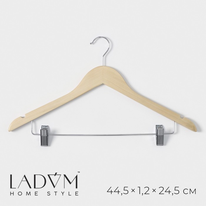 Плечики - вешалка для брюк и юбок LaDо?m Bois, 44.5?1.2?24.5 см, с зажимами, широкие плечики, сорт А, светлое деревоВопросы по товару