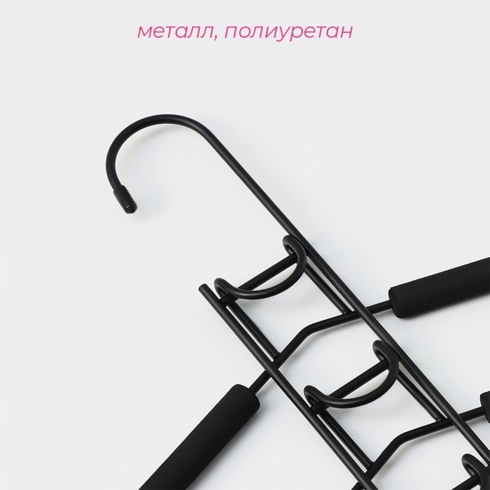 Вешалки для брюк и юбок LaDо?m, 32.5?13 см, 2 шт., с зажимами, пластик софт тач, чёрныеВопросы по товару