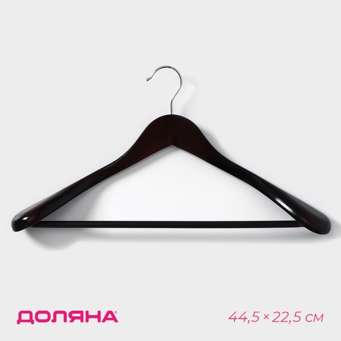 Плечики - вешалка для одежды Доляна, деревянная, с перекладиной, широкие плечики, 44.5?22.5 см, коричневыеВопросы по товару