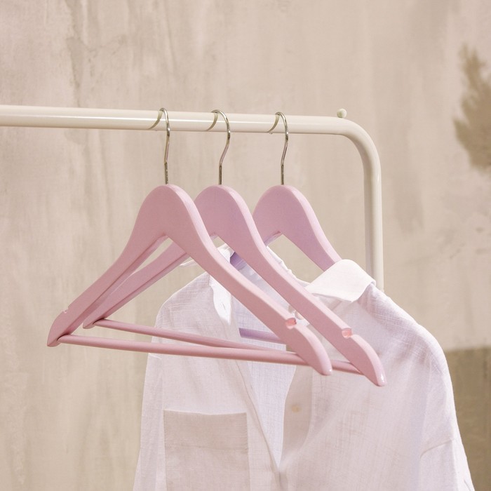 Плечики - вешалки LaDо?m Brillant, 44.5?23?1.2 см, 3 шт., деревянные, широкие плечики, розовыеВопросы по товару