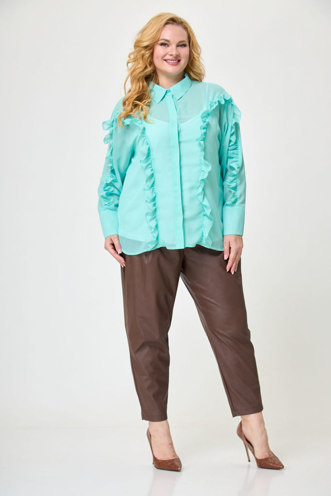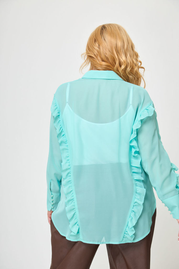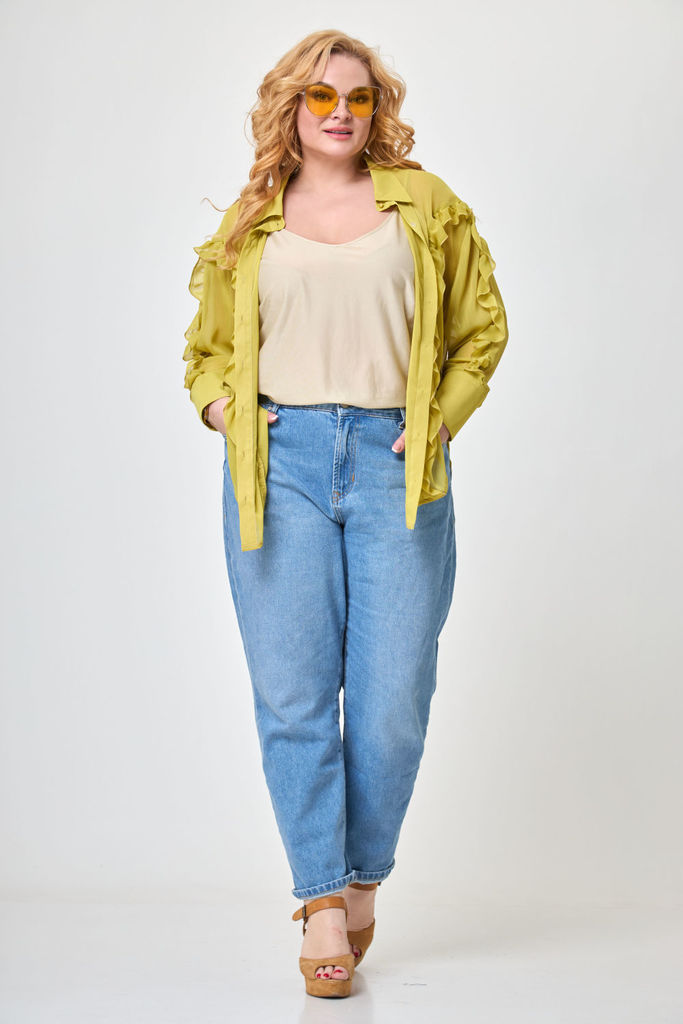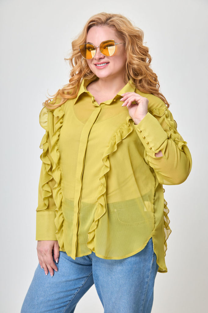Состав: Топ- Хлопок-95%; Эластан-5%; Рубашка- Вискоза-29%; ПЭ-71%; Сезон: Весна Рост: 164 Страна бренда: Беларусь Состав: Топ: Хлопок-95%; Эластан-5%; Рубашка: Вискоза-29%; ПЭ-71%; Рубашка оверсайз - ... Показать описаниехит сезона. По переду рельеф с рюшей, потайная планка на петли пуговицы. Спинка с рельефами и рюшей. Низ рубашки фигурный, длина до середины бедра. Рукав длинный, с зауженным манжетом, по переду по всей длине рукава декоративная рюша. Горловина обработана классическим рубашечным воротником на стойке. С радостью готовы представить вам рубашку, которая никого не оставит равнодушной. Женственность и свобода, стиль и не много дерзости. В ней вы будете чувствовать себя, как модель на неделе моды в Париже. В комплекте топ. Цвет на фото может отличатся от цвета изделия в живую, из-за разницы освещения и цветопередачи экранов на которых просматривается изображение. Замеры: ОГ- объем груди; ОТ-объем талии; Об-объем бедер; ДИ-длина изделия; ДР-длина рукава. Размер 54. ОГ- 136; ОТ-136; ОБ-136; ДИ-73; ДР -55. Размер 56. ОГ-140 ; ОТ-140; ОБ-140; ДИ-73; ДР -55. Размер 58 . ОГ- 144; ОТ-144; ОБ-144; ДИ-73; ДР -55. Размер 60. ОГ- 148; ОТ-148; ОБ-148; ДИ-73; ДР -55.