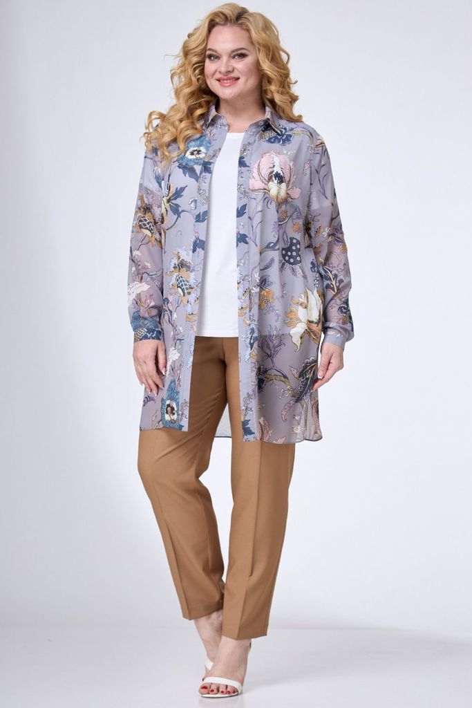 Состав: Блуза- ПЭ-100%; Футболка- Вискоза-40%; Хлопок-60%; Сезон: Весна Рост: 164 Страна бренда: Беларусь Состав: Блуза: ПЭ-100%; Футболка: Вискоза-40%; Хлопок-60%; Отличный летний вариант для работы ... Показать описаниеи повседневной носки легкая с цветочным принтом блузка в комплекте с однотонной приятной к телу футболкой. Блузка удлиненная прямого силуэта из шифоновой ткани. Воротник рубашечного типа на притачной стойке. Перед с центральной застежкой на петли и пуговицы на притачных планках. В боковых швах - разрезы. Рукав втачной длинный, с патой и на манжете с застежкой на пуговицу. Футболка полуприлегающего силуэта из трикотажной ткани, с округлой формой горловины, с нагрудными вытачками по переду. Рукав короткий, втачной. Длина блузки: 90 см Длина рукава: 61 см Длина футболки: 63 см Длина рукава: 22 см