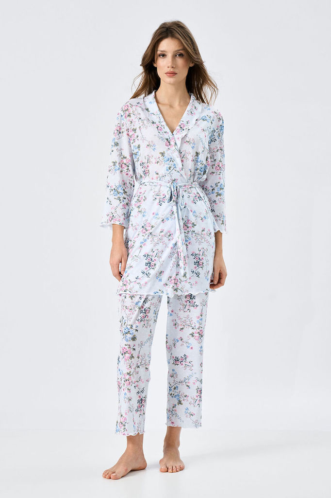 Состав: ПЭ-95%; Эластан-5%; Страна бренда: Латвия Состав: ПЭ-95%; Эластан-5%; Представляем комплект Francine, созданный для максимального комфорта и расслабления. Этот комплект, выполненный в безмятеж... Показать описаниеном арктическом голубом цвете, на ощупь мягкий, как облачко, что создает райские ощущения. И кто знает, может быть, благодаря его небесной мягкости вы просто унесетесь в страну грез! Верх с длинными рукавами и округлым вырезом горловины, а низ классического кроя с завязывающейся талией и удобными карманами. Комплект украшен изящной вышивкой в виде короны на верхней части и брюках, что придает ему элегантности, а атласная лента и атласная отделка по краям в тон украшают его, гарантируя, что вы будете чувствовать себя избалованной с головы до ног. Насладитесь комфортом и стилем в наборе Francine, который станет идеальным дополнением к вашим ритуалам релаксации.