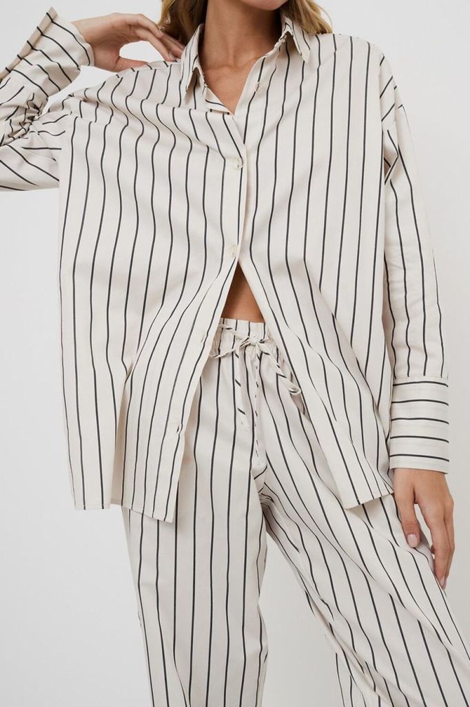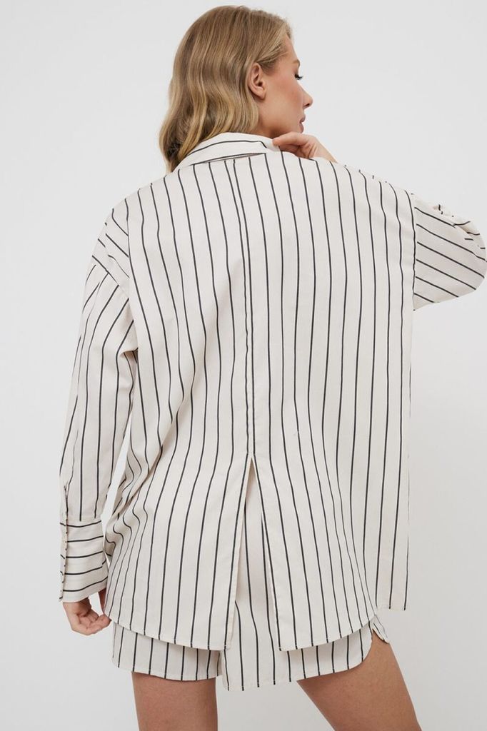 Состав: Хлопок-100%; Страна бренда: Польша Состав: Хлопок-100%; Представляем вам комплект Seraphine, гармоничное сочетание комфорта и стиля. Пижама выполнена из лёгкой хлопковой ткани с полосками, что... Показать описание придаёт ей очарование. Рубашка на пуговицах с длинными рукавами имеет классический воротник и закруглённый низ, высокие манжеты на рукавах и небольшую прорезь на спине, что придаёт ей лёгкое очарование. В сочетании с широкими шортами с завышенной талией, закруглёнными углами, эластичным поясом на завязках и удобными карманами этот комплект выглядит стильно и комфортно. Независимо от того, отдыхаете ли вы дома или прогуливаетесь по городским улицам, комплект Seraphine обеспечит вам неоспоримый стиль и непревзойденный комфорт.