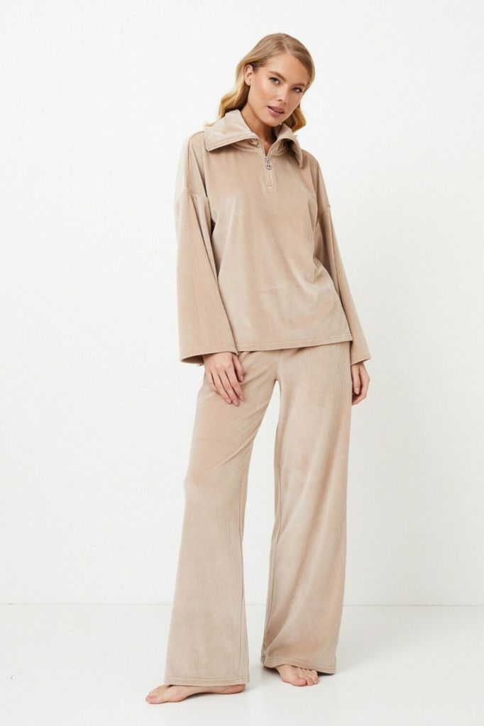 Состав: ПЭ-95%; Эластан-5%; Страна бренда: Латвия Состав: ПЭ-95%; Эластан-5%; Представляем комплект Quinn, в котором комфорт сочетается с королевским стилем! В топе с длинными рукавами, уникальной зас... Показать описаниетежкой-молнией в форме короны и уютным высоким воротником вы почувствуете себя королевой, отдыхающей дома. Широкие брюки обеспечивают свободу движений и удобство благодаря карманам для предметов первой необходимости. Выполненный в бежевом цвете, этот комплект излучает неподвластную времени элегантность. Побалуйте себя набором Quinn и насладитесь комфортом и стилем! Материал велсофт в рубчик.