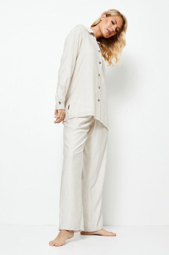 Состав: Вискоза-85%; Нейлон-15%; Страна бренда: Польша Состав: Вискоза-85%; Нейлон-15%; Комплект Amara легко сочетает в себе стиль и комфорт, создавая уютный образ, который идеально подойдет для любог... Показать описаниео повседневного случая, от ленивого дня дома до стильной прогулки по пляжу. Рубашка выполнена в классическом стиле, отличается изысканными манжетами на пуговицах и шикарными разрезами по бокам, что делает ее идеальным как для отдыха в помещении, так и на пляже. Брюки имеют пояс с регулируемыми завязками, дополнены металлическими украшениями, практичные карманы обеспечут стиль и комфорт.