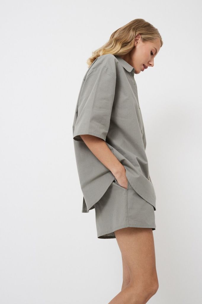 Состав: Хлопок-86%; Лён-14%; Страна бренда: Польша Состав: Хлопок-86%; Лён-14%; Представляем вам комплект Octavia — спокойное сочетание комфорта и стиля, созданное для ваших моментов расслабления. Это... Показать описаниет комплект, изготовленный из лёгкой хлопково-льняной ткани, окутает вас ощущением спокойствия благодаря успокаивающему оттенку приглушённого оливкового цвета. Свободная рубашка на пуговицах длиной до локтя может похвастаться классическим воротником, закруглённым низом и привлекательными декоративными пуговицами по всей длине спинки, которые добавят вашему образу немного оригинальности. Широкие шорты с высокой талией, эластичным поясом, декоративными пуговицами и практичными карманами. Этот ансамбль излучает непринуждённую элегантность. Комплект Octavia позволит вам выглядеть непринуждённо и элегантно, не отказываясь от комфорта, и наслаждаться каждым моментом.