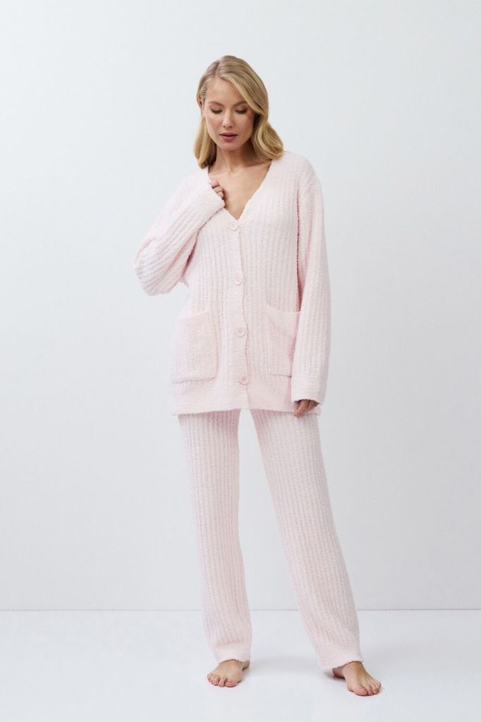 Состав: ПЭ-97%; Эластан-3%; Страна бренда: Польша Состав: ПЭ-97%; Эластан-3%; Представляем вашему вниманию уютный комплект MERRY SET SOFT, созданный для максимального комфорта. Стильный верх с длинным... Показать описаниеи рукавами застегивается спереди на пуговицы, имеет V-образный вырез и удобные карманы для дополнительной функциональности. В сочетании с брюками этот комплект создает успокаивающий образ, напоминающий мягкость овечьей шерсти. Он идеально подходит для отдыха и является воплощением релаксации.