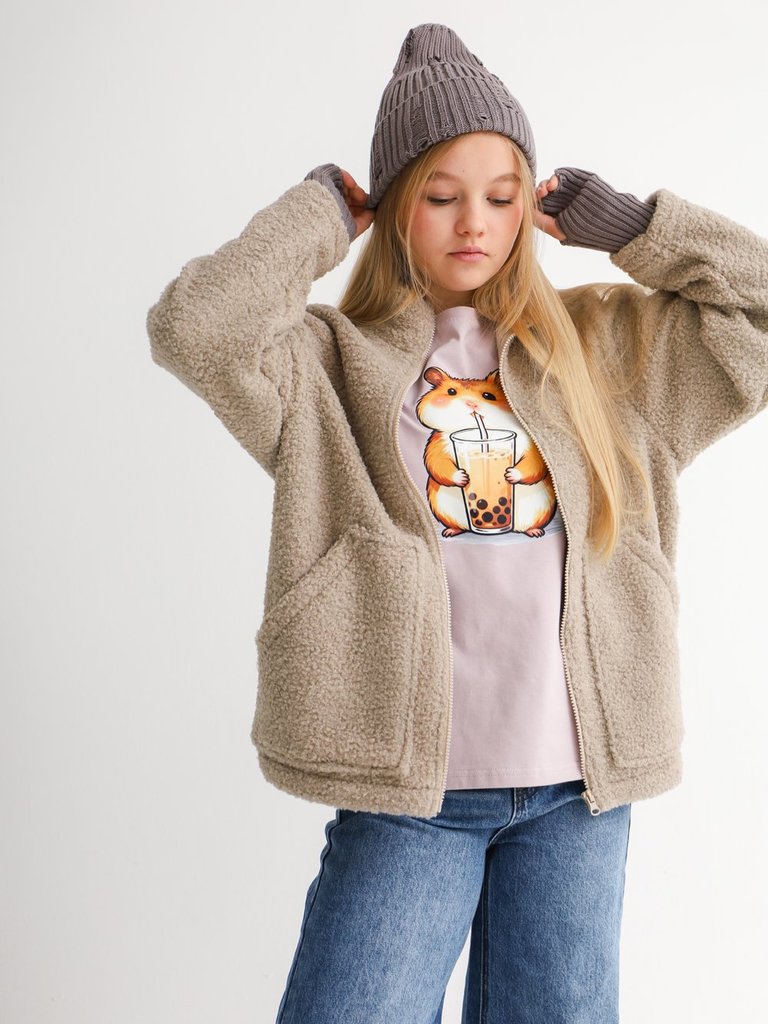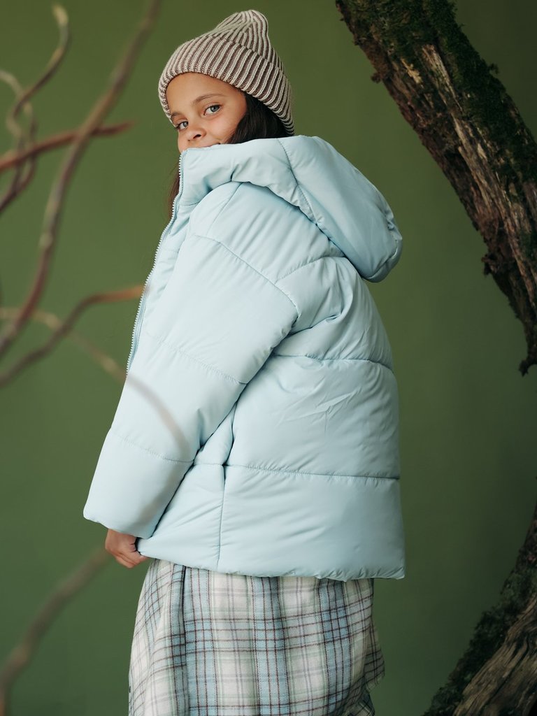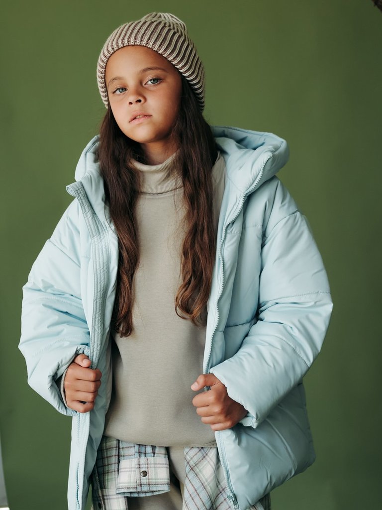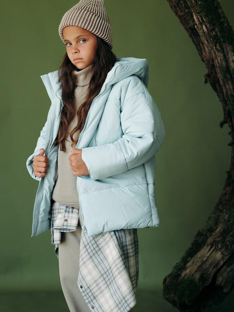 Современная модель для самых стильных детей. Куртка силуэта over size со спущенной линией плеча. Глубокий втачной капюшон надежно защитит от непогоды. Регулируемая утяжка по низу изделия, карманы в бо... Показать описаниековых швах и застежка на молнию с внутренним ветрозащитным клапаном с защитой подбородка от защемления. Примерный температурный режим от -3°С до +10°С