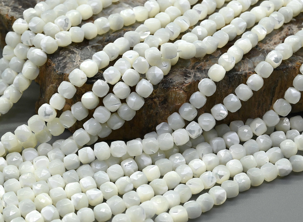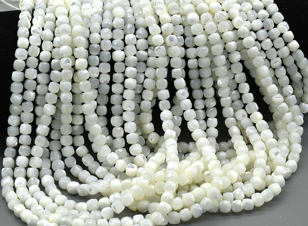 Белый перламутр кубик с гранями 4-5мм, 37см, 82 бусиныВопросы по товару