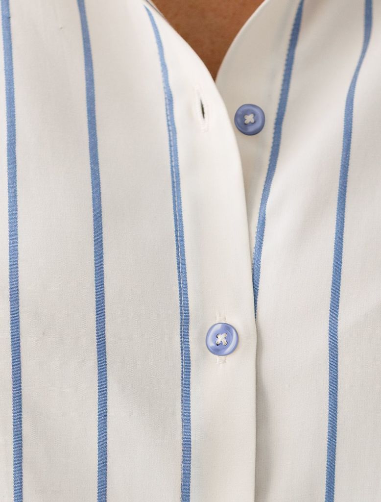 Состав: 100%Хлопок Параметры модели на первом фото: Рост 170, бюст 89, талия 63, бедра 92 Размер товара на первом фото: 42 Блузка выполнена из премиального хлопкового поплина. Лаконичная модель с высо... Показать описаниекими манжетами и пуговицами из натурального перламутра хорошо впишется в любой гардероб и внесет яркий летний акцент в образ. Натуральный состав ткани обладает высокой воздухопроницаемостью и гигроскопичностью. В изделии будет комфортно, даже в самое жаркое время года. Подходит для любой фигуры. На спинке фирменный логотип бренда.