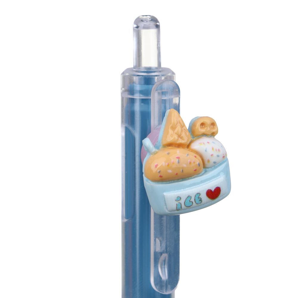 Авторучка гелевая синяя, вращающаяся фигурка на клипе "Сладости", антискользящая накладка, 4 дизайнаВопросы по товару