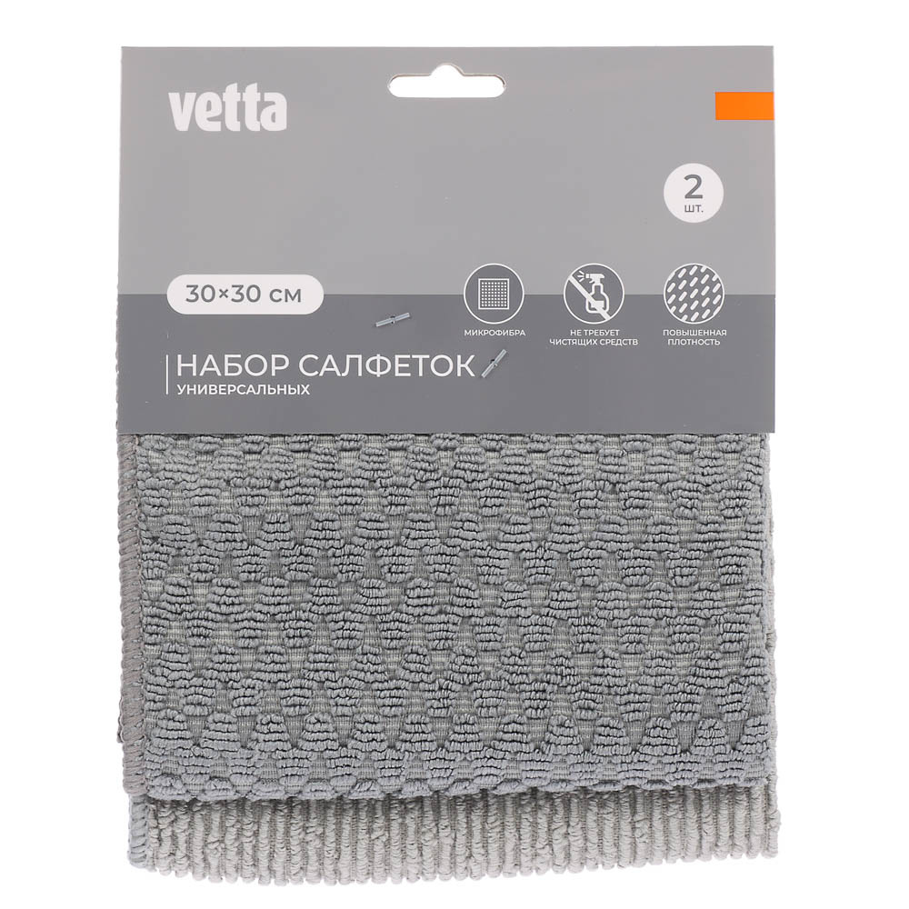 Набор плотных салфеток из микрофибры VETTA 30х30 см – это 2 многоразовые салфетки с разным рисунком поверхности для сухой и влажной уборки. Не требуют использования чистящих средств для уборки, что ис... Показать описаниеключает риск гиперчувствительности у людей, склонных к аллергии. Хорошо впитывают влагу, быстро и эффективно справляются с любыми загрязнениями. Подходят для чистки любых поверхностей, включая кафель и зеркала. Не оставляют разводов и ворсинок. Плотность – 350 г/м2.