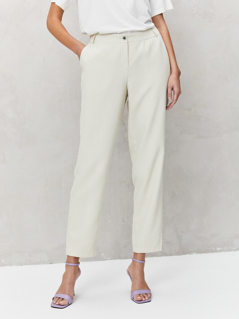 Артикул: Б10992. Тип ткани: смесовая. Состав: 98% п/э, 2% эластан. Материал: микровельвет. Цвет: молочный. Принт: отсутствует. Вид застежки: молния. Тип посадки: средняя. Фасон: кюлоты. Пояс: притачно... Показать описанией. Крой: свободный. Резинка в поясе: отсутствует. Карманы: отсутствуют. Декоративные элементы: отсутствуют. Длина готового изделия по внутреннему шву: 44-54/ 64 см. Длина готового изделия по боковому шву: 44/ 94 см, 46/ 95 см, 48/ 95 см, 50/ 96 см, 52/ 97 см, 54/ 98 см. Размер изделия на модели: 44. Рост модели: 168 см. Кюлоты — это модель укороченных штанов, которая сегодня пользуется большой популярностью. Они отлично подходят для любого случая и стиля. Их можно сочетать с разными верхами: блузками, топами и другими вещами. Для создания более официального или делового образа вы можете дополнить кюлоты пиджаком, жакетом или жилетом. Кюлоты хорошо сочетаются как с обувью на каблуке, так и с плоскими туфлями, кедами или сандалиями. Уход за изделием: ручная стирка до 30 градусов; нельзя отбеливать; отжим запрещен; гладить при t не более 110 С; гладить с изнанки. *Допуск отклонения длины при массовом производстве 1-3 см является нормой.
