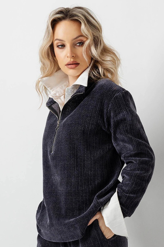 Блузка - толстовка из мягкого тактильно-приятного трикотажного вельвета. Хлопковая изнанка. Короткая функциональная молния из стойки. Блузка из хлопкового вельвета (можно собрать комплект с брюками ар... Показать описаниетикул 153. К данной расцветке подходят брюки арт.153/06). Материал - трикотажный вельвет приятен к телу, мягко ложится по любой фигуре, не вытягивается, не затирается в процессе эксплуатации. Комфортная посадка дарит уверенность и ощущение свободы. Длина изделия по лицевой стороне от высшей точки плеча до низа изделия 64см.