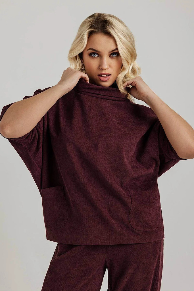 Блузка из микровельвета.Крой - свободный.Воротник - хомут Вельветовая туника свободного кроя — отличный выбор для любого времени года. Рукава-"летучая мышь" 3/4, плюс удлиненный силуэт обеспечивают уд... Показать описаниеобство и возможность сочетать ее с любым низом. Можно сочетать с брюками 207/05