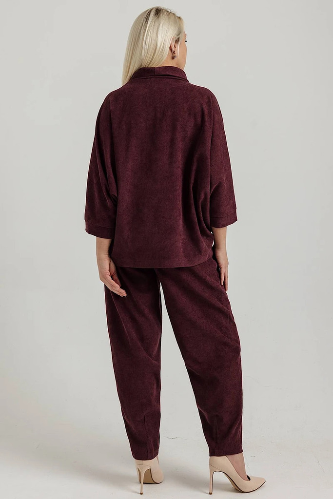 Артикул: Б12848-10М. Тип ткани: синтетический. Состав: 98% полиэстер, 2% эластан. Материал: вельвет. Цвет: шоколадный. Принт: отсутствует. Вид застежки: без застежки. Тип посадки: средний. Фасон: джог... Показать описаниегеры. Пояс: притачной. Крой: свободный. Резинка в поясе: есть. Карманы: есть. Декоративные элементы: отсутствуют. Длина готового изделия по внутреннему шву: 44/ 64 см, 46/ 65 см, 48/ 66 см, 50/ 67 см, 52/ 68 см, 54/ 69 см. Длина готового изделия по боковому шву: 44/ 88 см, 46/ 89 см, 48/ 90 см, 50/ 91 см, 52-54/ 92 см. Размер изделия на модели: 44 Рост модели: 168 см. Брюки отсняты с рубашкой арт. Б12863-10М Объемные брюки в стиле бохо — это свободный непринужденный стиль в современной моде. Шароварный силуэт создается за счет резинки по талии, свободной посадки в бедрах, бокового защипа по низу и оригинального высокого манжета в виде тюльпана. Свободные, прямые, просторные брюки бананы выгодно подчеркивают женские формы и скрывают недостатки. Комбинируйте их с различными видами топов, джемперов, блузок или футболок. Различные аутфиты сделают вас стильной, модной для любого выхода. Такие штаны универсальны и могут быть частью городского casual образа или классического делового, повседневного школьного и даже спортивного. Брюки бананы можно носить как домашнюю одежду, они незаменимы для поездок в путешествие или командировки. Уход за изделием: ручная стирка до 30 градусов; нельзя отбеливать; отжим запрещен; гладить при t не более 110 С; гладить с изнанки. Внимание! Рекомендуем ориентироваться на размерную сетку и выбирать свой привычный размер, согласно размерной таблице. *Допуск отклонения длины при массовом производстве 1-3 см является нормой.