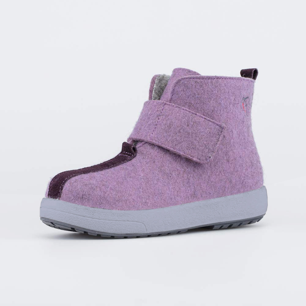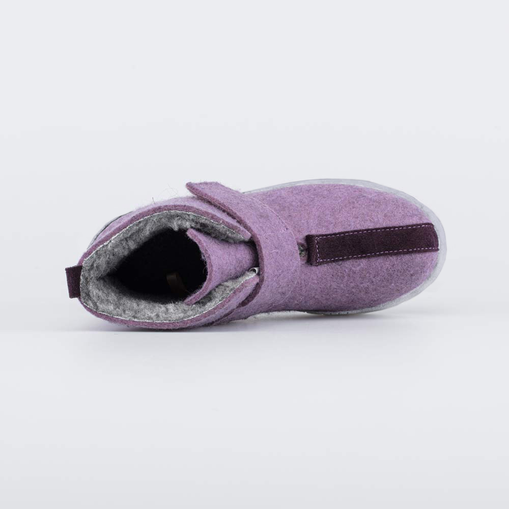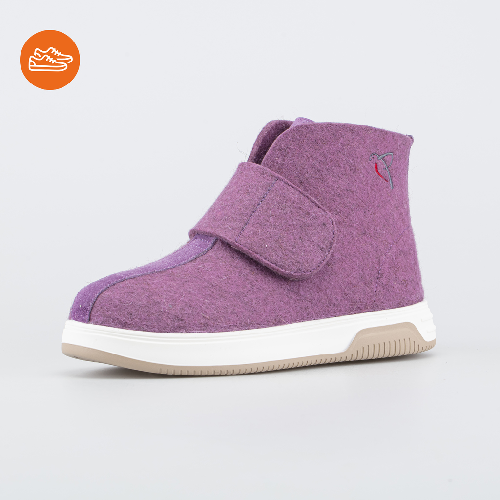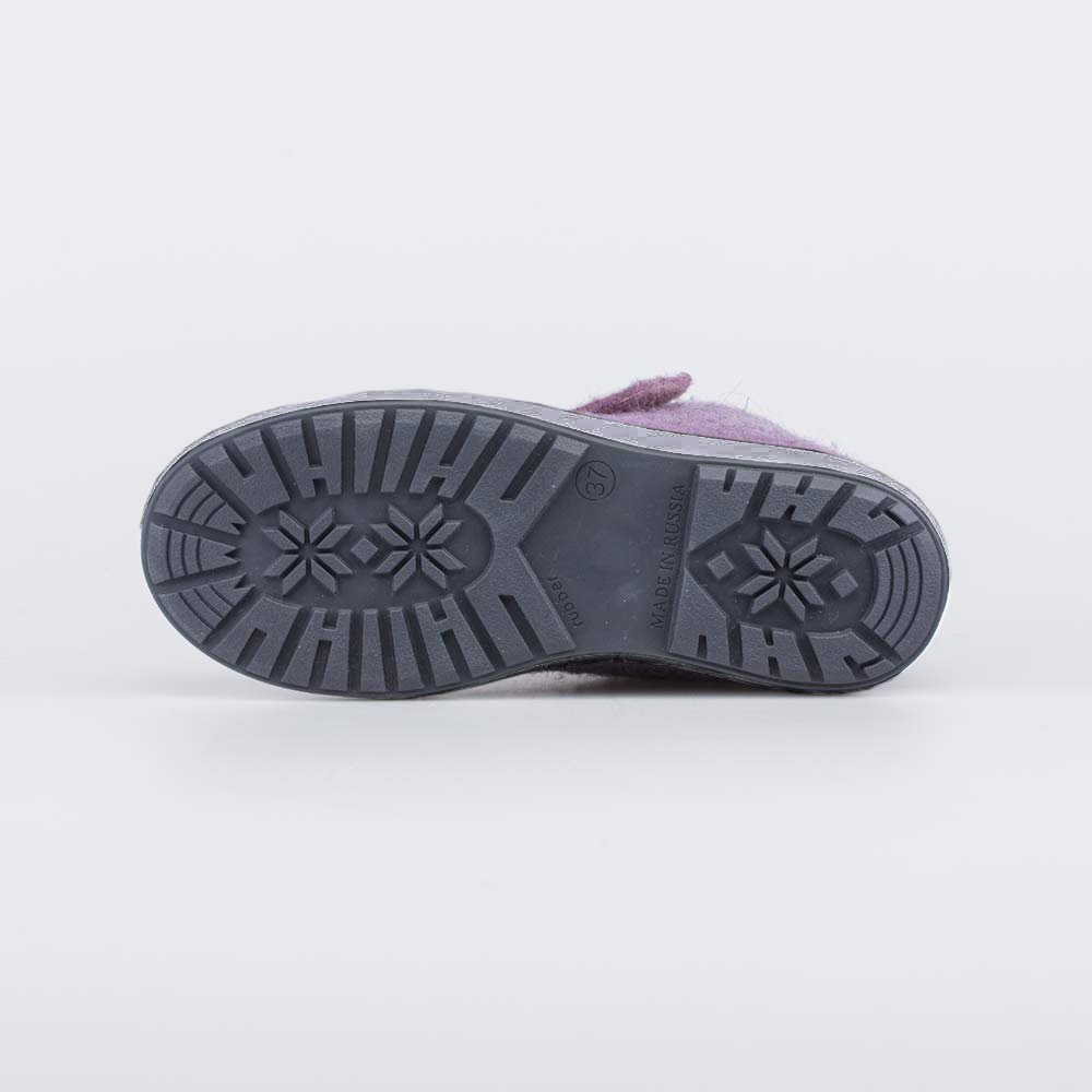 Описание Описание модели Укороченные валенки сиреневого цвета с подкладкой. Верх и стелька из натурального войлока (100% овечья шерсть), подкладка из шерстяного меха (содержание овечьей шерсти не мене... Показать описаниее 81%) - обеспечивают тепло даже в лютый мороз Удобная липучка-велькро надежно фиксирует обувь на ногах и позволяет быстро обуваться и разуваться. Подошва из ПУ с резиновой накладкой для придания устойчивости на скользских поверхностях. Модель имеет анатомически правильную форму следа, а стелька из натурального войлока/шерсти имеет свойство приформовываться к своду стопы, таким образом создавая индивидуальную анатомическую форму внутреннего пространства в обуви.