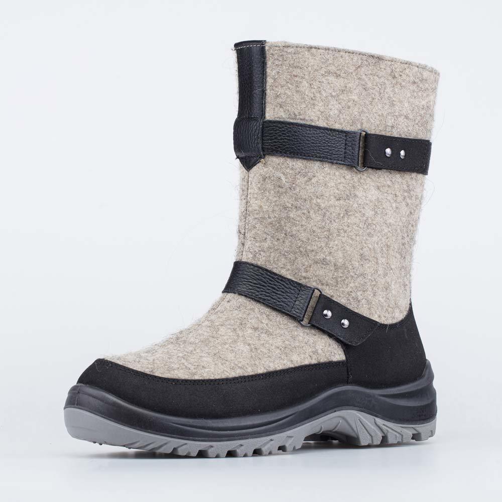Описание Описание модели Мужские валенки серого цвета выполнены в стиле мужских ботинок. Верх и съемная стелька - из натурального войлока, на 100% состоящего из овечьей шерсти. Он дарит ногам целебное... Показать описание сухое тепло и оказывает массажный эффект. Подкладка из шерстяного меха, более чем на 80% состоящего из овечьей шерсти, отлично сохраняет тепло, отводит влагу от ноги, придает дополнительный комфорт. Застежка на три кожаных ремешка с липучкой. Носочная и пяточная части защищены кожаными накладками с полиуретановым покрытием. Они предохраняют войлок от влаги и реагентов. Модная кедовая подошва из ПУ (полиуретана) дополнена резиновой накладкой для придания устойчивости на зимних поверхностях. Сделано в России, ТМ Гуслицкие.