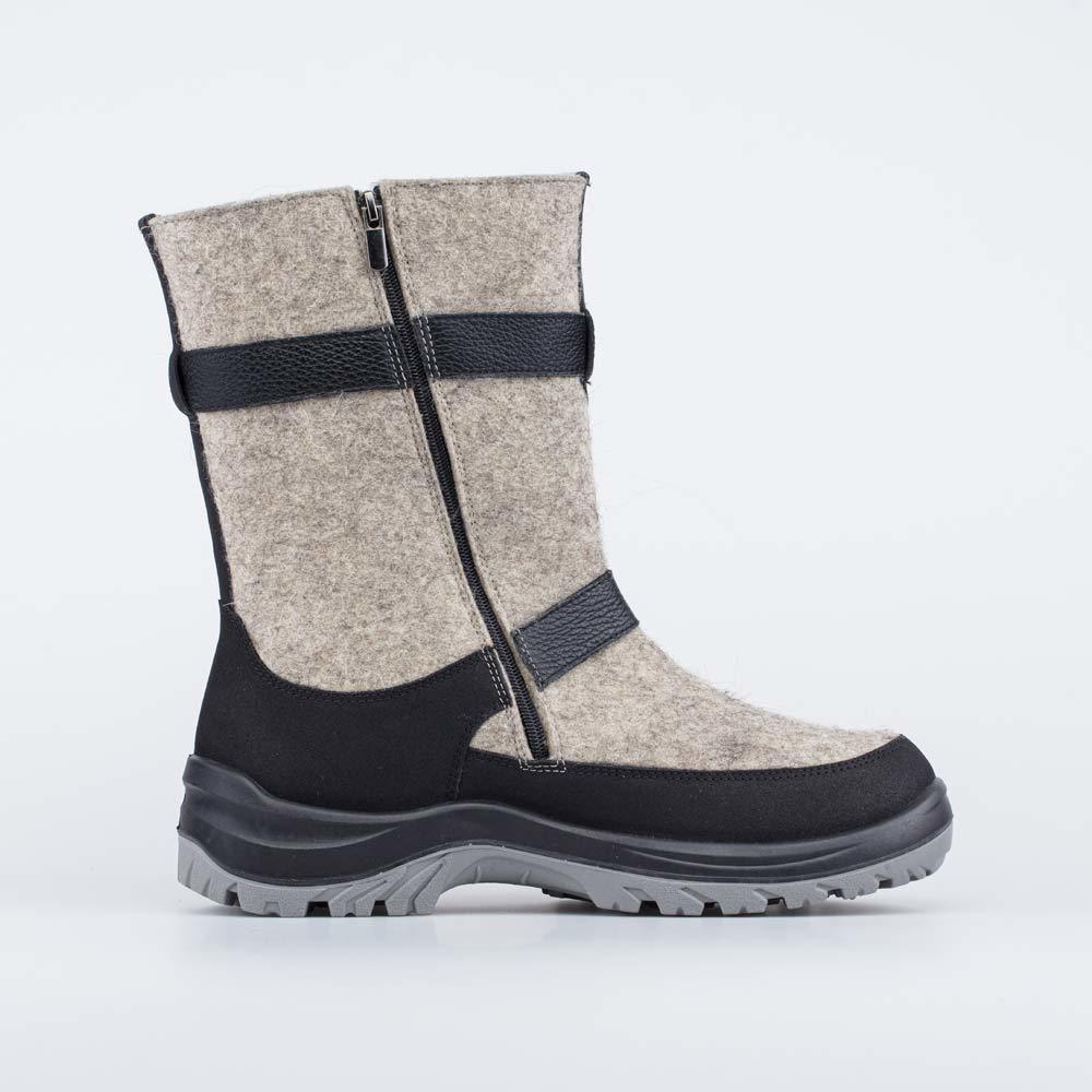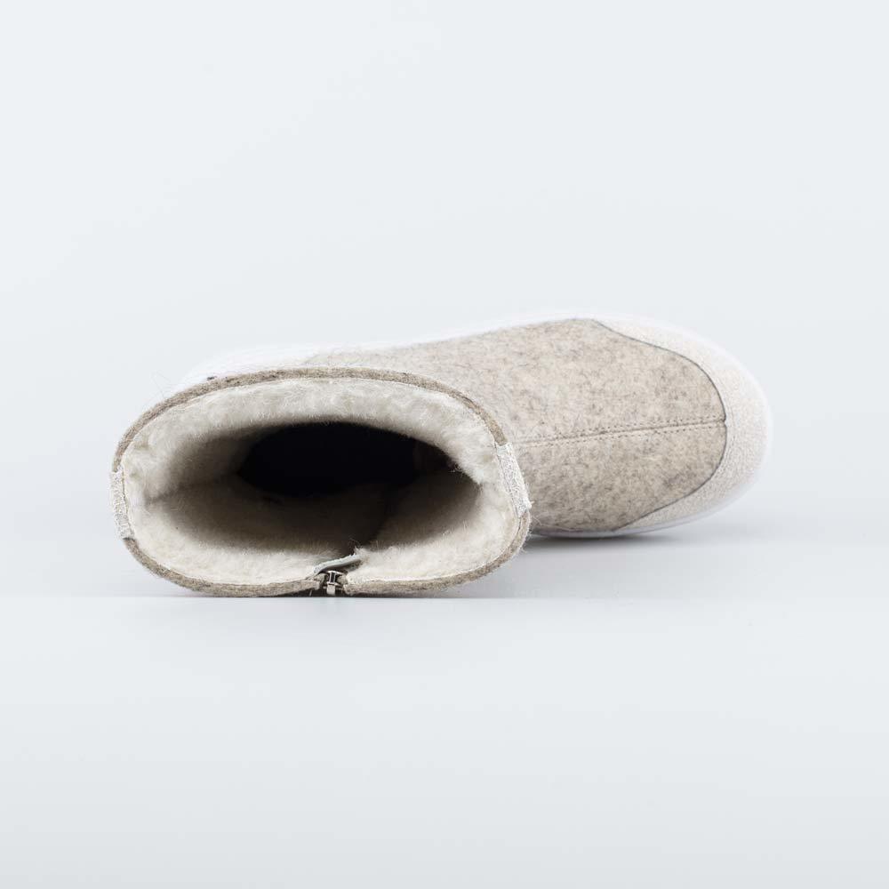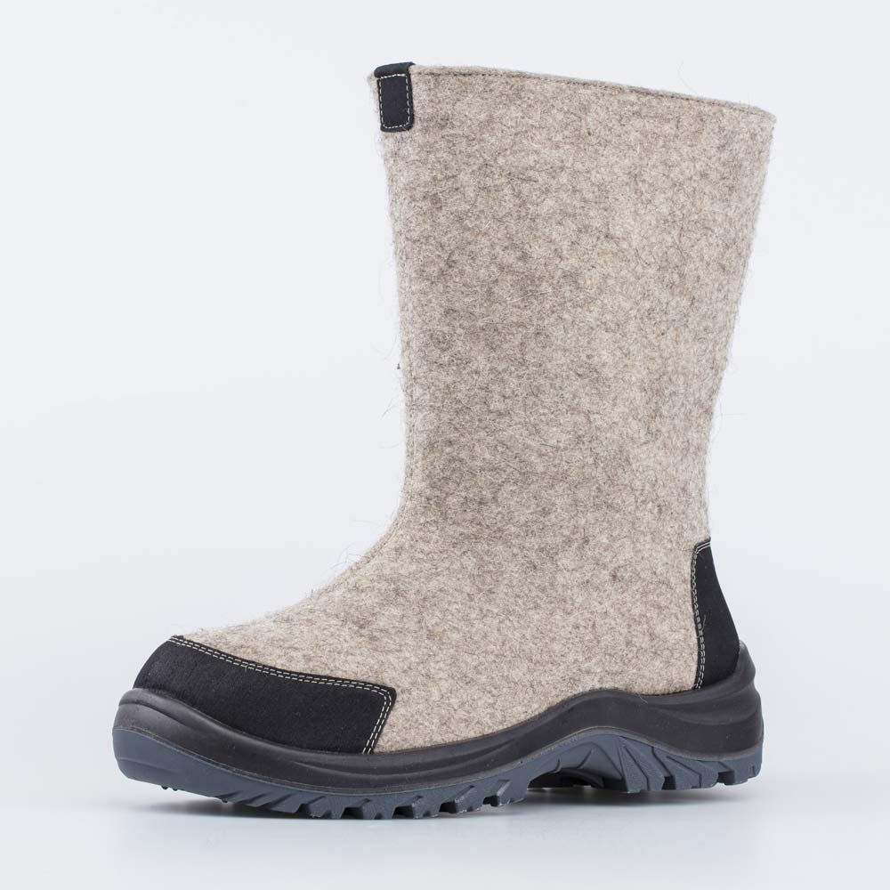 Описание Описание модели Уютные короткие валенки, стилизованные под войлочные ботинки, гармонично дополняют зимний гардероб современной женщины. Бежевый цвет войлока эффектно подчеркнут более светлым ... Показать описаниеоттенком меха барашек на манжете. Войлок плотный, с водоотталкивающими свойствами. Он надежно сохраняет тепло, дышит и создаёт приятный микроклимат вокруг стопы. Эти теплые валенки имеют подкладку из шерстяного меха, которая обеспечивает дополнительную теплоизоляцию и комфорт даже в сильные морозы. Войлочная стелька снабжена петелькой, чтобы легко вынимать ее для проветривания. Шнурки подчеркивают концепцию ботинок из войлока, а застежка-молния дает возможность быстро обуваться и разуваться. Модная плоская подошва из облегченной резины хорошо амортизирует, обеспечивает высокую устойчивость зимней обуви и органично дополняет цветовую гамму. Модель анатомически правильная: обеспечивает комфортную поддержку стоп в течение всего дня. Сделано в России, ТМ Гуслицкие.