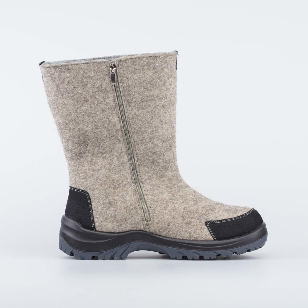 Описание Описание модели Войлочные полуботинки для мужчин укороченного фасона обеспечивают сухое тепло в сильные морозы до - 30, помогают сохранить комфорт при сырой и влажной погоде до +5. Верх и сте... Показать описаниелька из натурального войлока (100% овечья шерсть), подкладка из шерстяного меха (натуральные шерстяные волокна вплетены в текстильную основу). Войлок плотный, с водоотталкивающими свойствами, дышит и создаёт при этом приятный климат вокруг стопы на улице и в помещении. Носочная и пяточная части защищены кожаными накладками с полиуретановым покрытием. Они предохраняют войлок от влаги и реагентов. Молния позволяет быстро обуваться и разуваться. Кедовая подошва литьевого метода крепления из специального зимнего полиуретана снабжена резиновой накладкой на ходовой поверхности, предотвращающей скольжение обуви. Сделано в России, ТМ Гуслицкие.