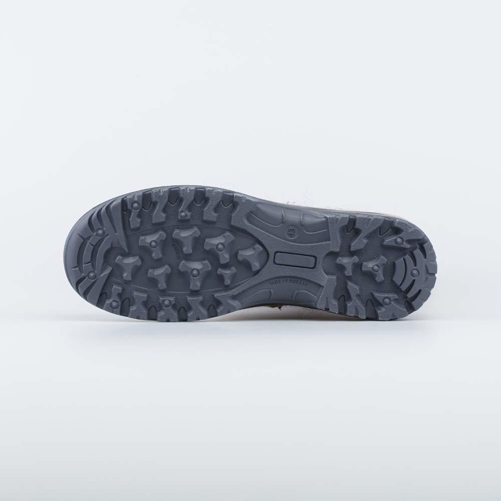 Описание Описание модели Укороченные мужские валенки серого цвета на подошве выполнены из натурального войлока. Войлок плотный, с водоотталкивающими свойствами, дышит и создаёт при этом приятный клима... Показать описаниет вокруг стопы на улице и в помещении. Материал подкладки - шерстяной мех из натуральной овечьей шерсти отлично сохраняет тепло и создает комфортный микроклимат вокруг ног. Липучках-велькро позволяет быстро обуваться и разуваться. Войлочная стелька снабжена петелькой, чтобы было удобно вынимать. Легкая и амортизирующая подошва из ПУ (полиуретана) дополнена резиной для придания устойчивости на зимних дорожках. Модель разработана с учетом особенностей стопы и обеспечивает правильную поддержку, что гарантирует комфорт даже при долгой ходьбе. Сделано в России, ТМ Гуслицкие.