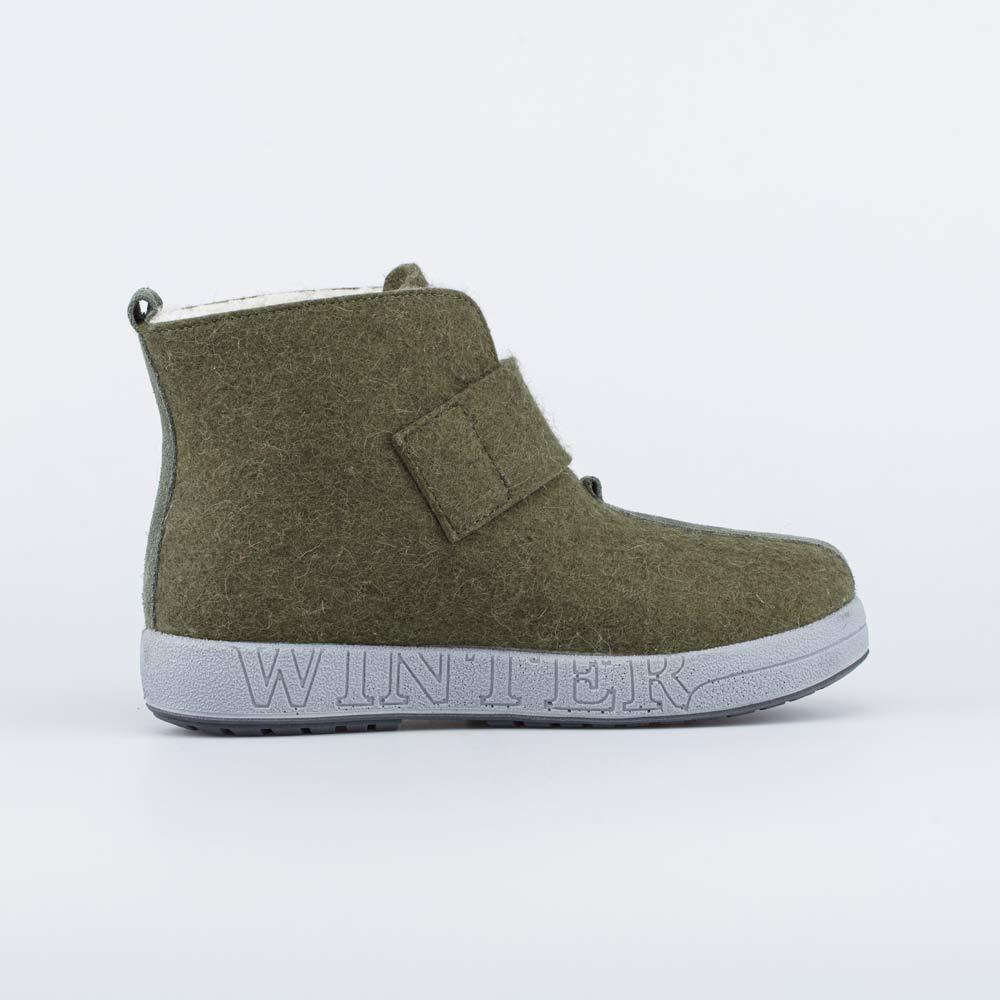 Описание Описание модели Укороченные валенки оливкового цвета с подкладкой. -Верх и стелька из натурального войлока (100% овечья шерсть), подкладка из шерстяного меха (содержание овечьей шерсти не мен... Показать описаниеее 81%) - обеспечивают тепло даже в лютый мороз -Удобная липучка-велькро надежно фиксирует обувь на ногах -Подошва из ПУ с резиновой накладкой - устойчивая, противоскользящая, гибкая. Модель имеет анатомически правильную форму следа, а стелька из натурального войлока/шерсти имеет свойство приформовываться к своду стопы, таким образом создавая индивидуальную анатомическую форму внутреннего пространства в обуви.