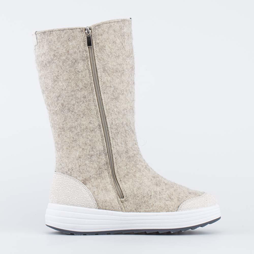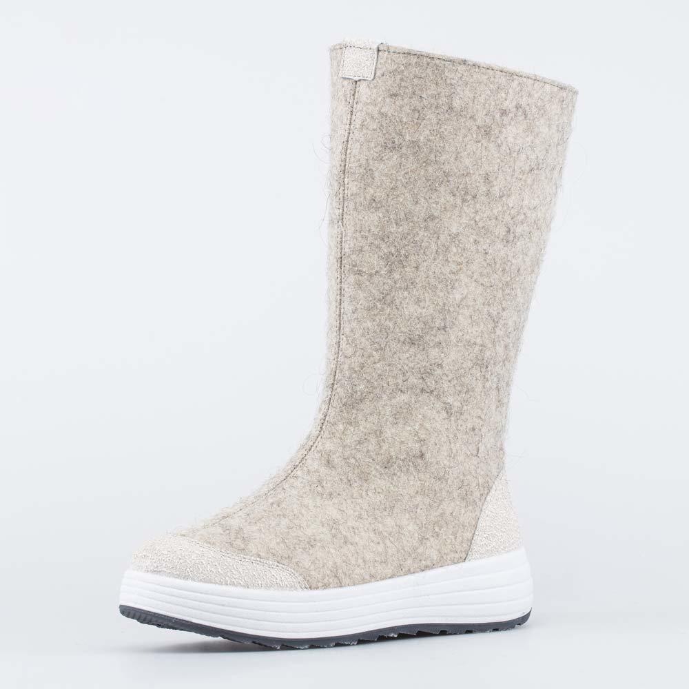 Описание Описание модели Женские валенки, выполненные в трендовом бежевом цвете, украшены снежинкой. Обеспечивают тепло в морозную погоду и сохраняют комфорт при влажной погоде до +5. Верх и стелька и... Показать описаниез натурального войлока (100% овечья шерсть). Войлок плотный, с водоотталкивающими свойствами, дышит и создаёт приятный микроклимат вокруг стопы на улице и в помещении. По всему периметру модель усилена дополнительной накладкой из кожи-велюра. Материал подкладки - шерстяной мех из натуральной овечьей шерсти. Он отлично сохраняет тепло. Войлочная стелька снабжена шелковой петелькой, чтобы было удобно вынимать для проветривания. Застежка-молния позволяет быстро обуваться и разуваться. Легкая подошва из полиуретана дополнена резиновой накладкой для повышения устойчивости на зимних дорожках. Модель анатомически правильная и обеспечивает комфортную поддержку стоп в течение длительного времени. Сделано в России, ТМ Гуслицкие.