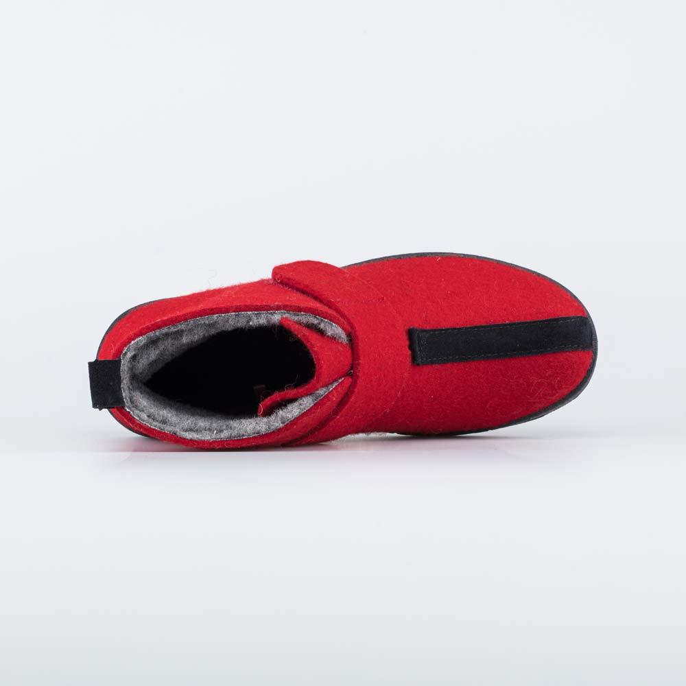 Описание Описание модели Красные войлочные полуботинки для мужчин укороченного фасона обеспечивают сухое тепло в сильные морозы до - 30, помогают сохранить комфорт при сырой и влажной погоде до +5. Ве... Показать описаниерх и стелька из натурального войлока (100% овечья шерсть), подкладка из шерстяного меха (натуральные шерстяные волокна вплетены в текстильную основу). Войлок плотный, с водоотталкивающими свойствами, дышит и создаёт при этом приятный климат вокруг стопы на улице и в помещении. Носочная и пяточная части защищены кожаными накладками с полиуретановым покрытием. Они предохраняют войлок от влаги и реагентов. Молния позволяет быстро обуваться и разуваться. Кедовая подошва литьевого метода крепления из легкого полиуретана снабжена резиновой накладкой на ходовой поверхности, предотвращающей скольжение обуви. Сделано в России, ТМ Гуслицкие.
