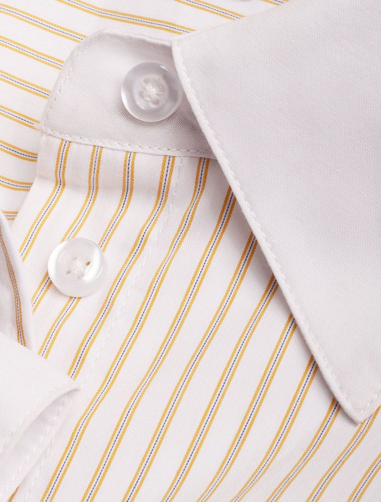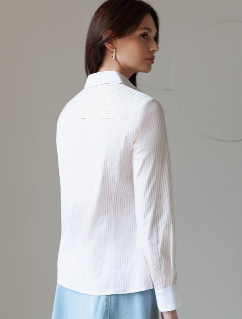 Состав: 72%Хлопок 25%ПА 3%ПУ Плотность: 103 Г/м2 Стильная блузка белого цвета в желтую полоску приталенного силуэта подарит вам эффектный образ на весну и лето. Принт в полоску нейтральных оттенков ос... Показать описаниевежает внешний вид и стройнит фигуру и визуально ытягивает силуэт. Идеально подходит для деловой работы и повседневной носки, подчеркивая вашу женственность и уверенность. Контрастные манжеты аккуратно оформлены и придают блузке дополнительный шарм, а воротник держит форму, добавляя образу элегантности. Блузка представлена так же в больших размерах, чтобы каждая могла подобрать вариант по своей фигуре. Эта красивая рубашка отлично сочетается с разными стилями и станет обязательной частью летнего гардероба. Простая, но стильная вещь, которая подчеркнет вашу индивидуальность и создаст эффектный образ.