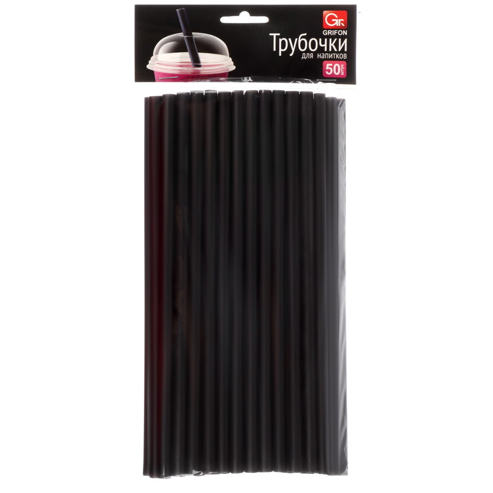 GRIFON Трубочки для напитков черные, 50 шт. в упаковке, 24 см, ф8 мм