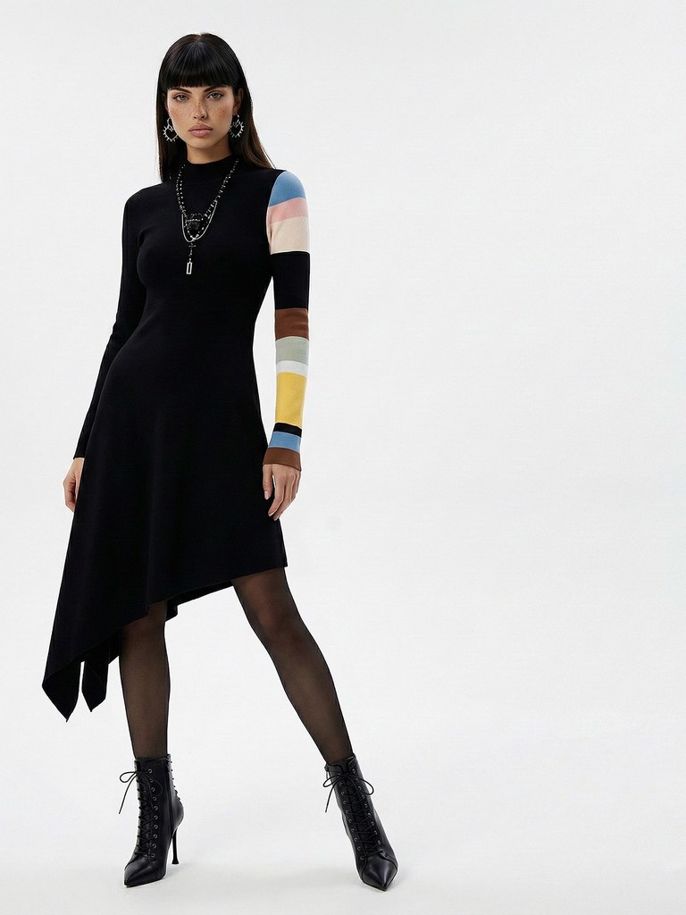 Состав: 50% вискоза, 28% полиэстер, 22% полиамид. Длина по спинке: 113 см. Цвет: черный. Сексуальное и непревзойденное по своей элегантности, это маленькое чёрное платье станет жемчужиной вашего гарде ... Показать описаниероба. Модель выполнена из мягкой шелковистой вискозной пряжи, что обеспечивает приятные тактильные ощущения и безупречную посадку. Основные особенности: • Трапециевидный силуэт создаёт утончённый и стильный лук, придавая образу лёгкость и женственность. • Длина до середины бедра делает изделие универсальным выбором для самых разных случаев, от деловых встреч до вечерних мероприятий. • Длинные пышные рукава из ткани крэш-шифон добавляют воздушности и изящества, а манжета, связанная мелким рубчиком - завершённость и аккуратность. • Круглый, неглубокий вырез горловины подчёркивает линии шеи. • Базовая модель позволяет сосредоточить внимание на деталях оутфита. Подробное описание: https://happychoice.ru/catalog/platya/2403_plate_zhenskoe_tsvet_chyernyy/