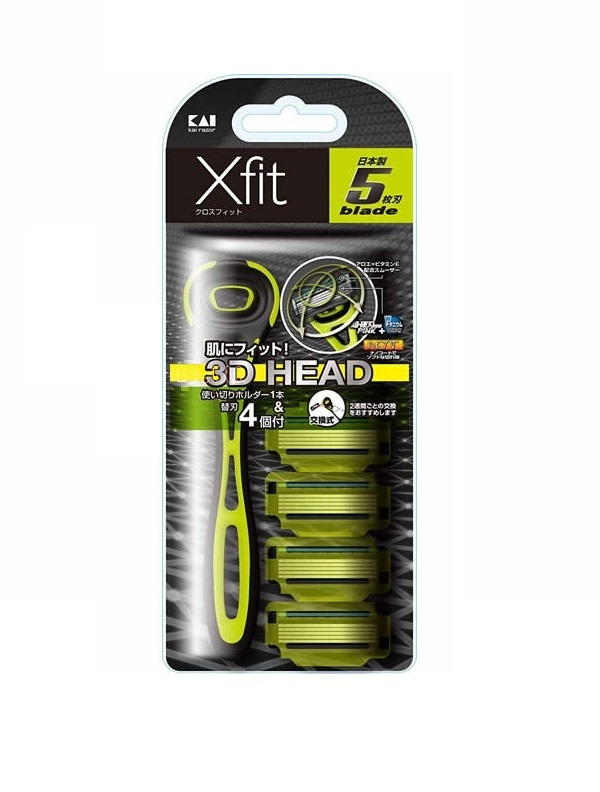 KAI Бритва безопасная Xfit 3D HEAD с 5ю лезвиями, плавающая головка, 1 станок + 4 сменные кассеты, НАБОРВопросы по товару