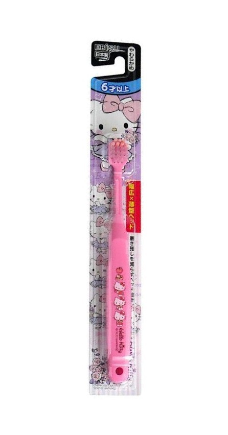 EBISU Детская зубная детская щетка Hello Kitty от 6 до 12 лет, средней жесткости, РОЗОВАЯВопросы по товару