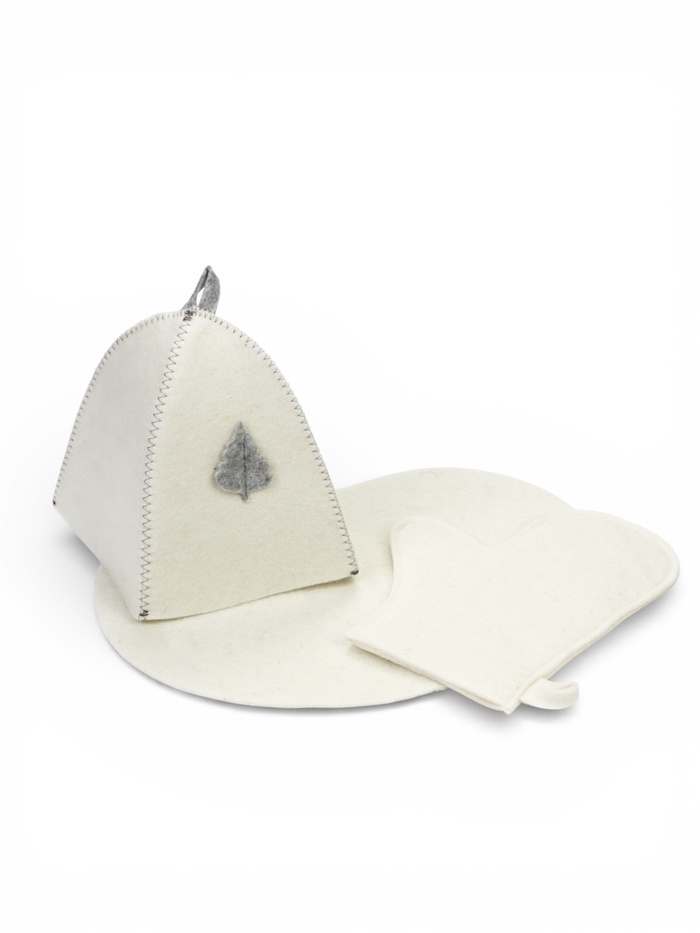 Для комфортного отдыха в парной возьмите с собой набор банных принадлежностей. Предметы из этого комплекта предохраняют тело от перегрева и являются средствами индивидуального пользования. Влажные изд... Показать описаниеелия рекомендуется сушить в расправленном виде на горизонтальной поверхности. Принадлежности из войлока и фетра стирайте вручную при температуре воды 30 °C.