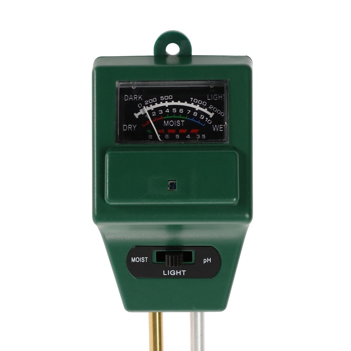 Измеритель параметров почвы 3 в 1 позволяет определить влажность, уровень pH (кислотность) и освещённость почвы. Подходит для комнатных растений, рассады, теплиц и открытого грунта. Помогает контролир... Показать описаниеовать условия выращивания без использования батареек. Применение Простой в использовании прибор помогает своевременно корректировать полив и уровень кислотности почвы, обеспечивая здоровый рост растений. Компактный размер и лёгкий вес делают его удобным для регулярного контроля состояния грунта. Комплектация * Измеритель, упаковка Дополнительно * Тип: измеритель параметров почвы * Функции: влажность, pH (кислотность), освещённость * Количество режимов: 3 * Питание: не требуется (без батареек) * Материал корпуса: пластик, металл * Цвет: зелёный * Назначение: для комнатных и садовых растений * Применение: грунт, теплицы, клумбы, горшки
