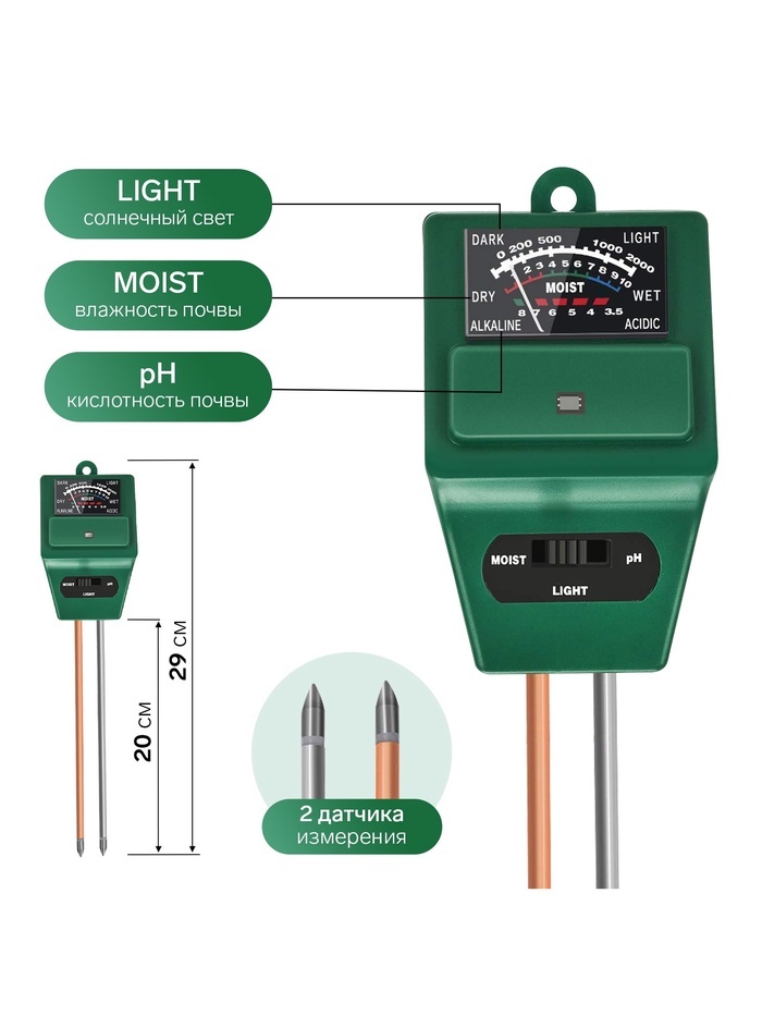 Измеритель параметров почвы, влажность/pH/кислотность, зелёныйВопросы по товару