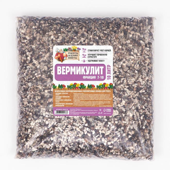 Вермикулит «Рецепты Дедушки Никиты» для растений, добавка в грунт, для рассады, фр 0.25-1, 10 л.Вопросы по товару