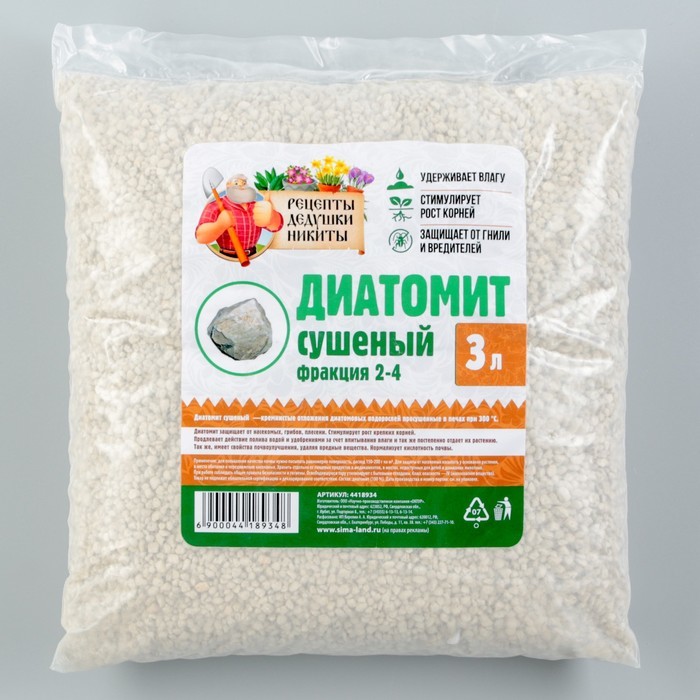 Вермикулит «Рецепты Дедушки Никиты» для растений, добавка в грунт, фр 3-5, 4 л.Вопросы по товару