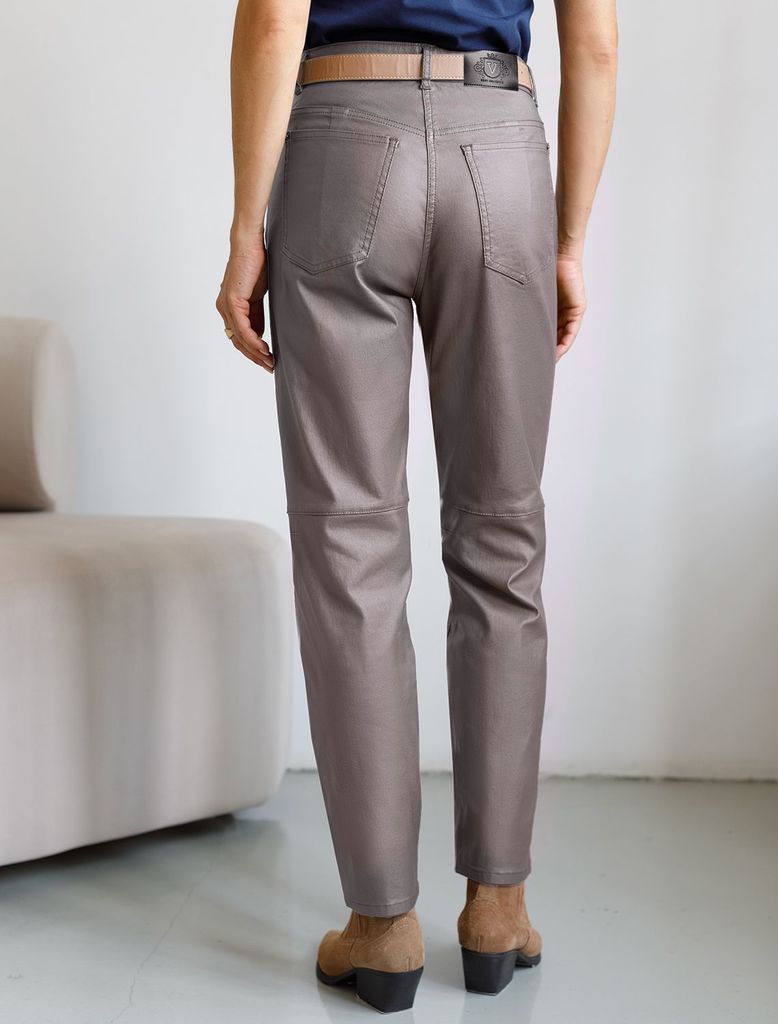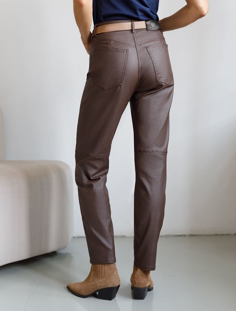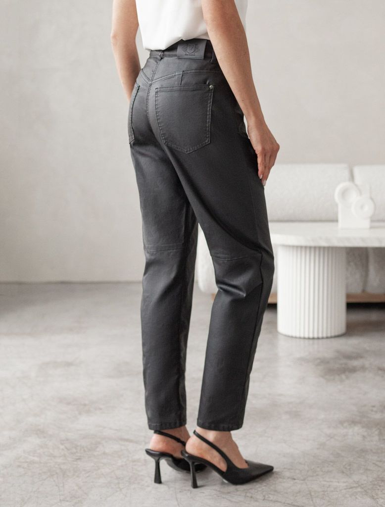 Брюки зауженные из эластичного хлопка с покрытием под кожуВопросы по товару