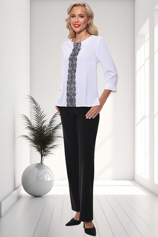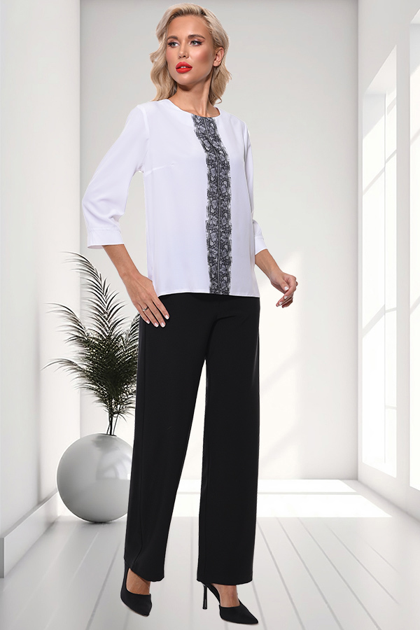 Блуза свободного силуэта. Вырез горловины классический округлый обработан обтачкой по передней полочки, по спинке сделана капелька, застегивается на пуговичку. Рукава 3/4, втачные, с манжетами. Украше... Показать описаниена французским кружевом. Блузка выполнена из легкой, нежной ткани, которая приятна на ощупь и обеспечивает комфорт в течение всего дня. Артикул: бл0170102 Цвет: Белый Состав: Полиэстер 60%, Вискоза 35%, Эластан 5% Длина изделия: 60 см. Рекомендуемый уход за изделием деликатная или ручная стирка на 30 градусах.Нельзя отбеливать, утюжить с изнанки. Цвет изделия на фотографии может отличаться от фактического из-за настройки монитора. Модель: Рост 170, Размер 44.