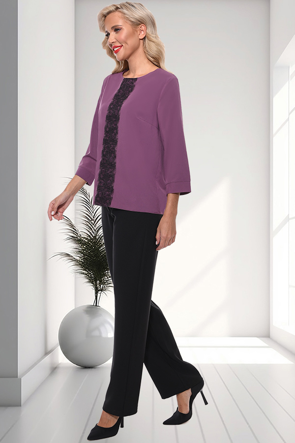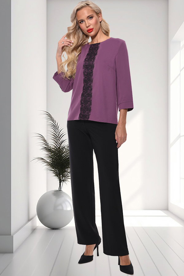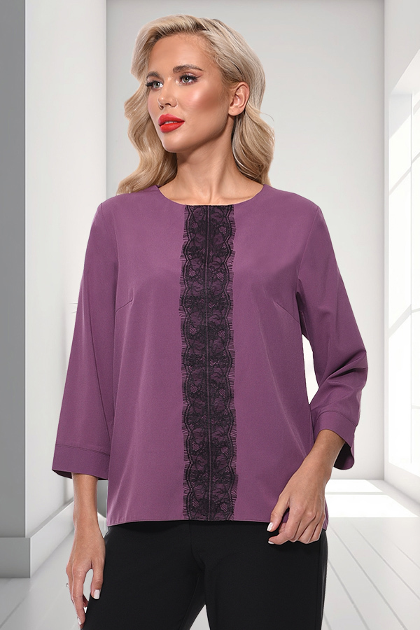 Блуза свободного силуэта. Вырез горловины классический округлый обработан обтачкой по передней полочки, по спинке сделана капелька, застегивается на пуговичку. Рукава 3/4, втачные, с манжетами. Украше... Показать описаниена французским кружевом. Артикул: бл0170132 Цвет: т.сирень Ткань: Плательной-блузочная Состав: Полиэстер 60%, Вискоза 35%, Эластан 5% Длина изделия: 60 см. Рекомендуемый уход за изделием деликатная или ручная стирка на 30 градусах.Нельзя отбеливать, утюжить с изнанки. Цвет изделия на фотографии может отличаться от фактического из-за настройки монитора. Модель: Рост 170, Размер 44.