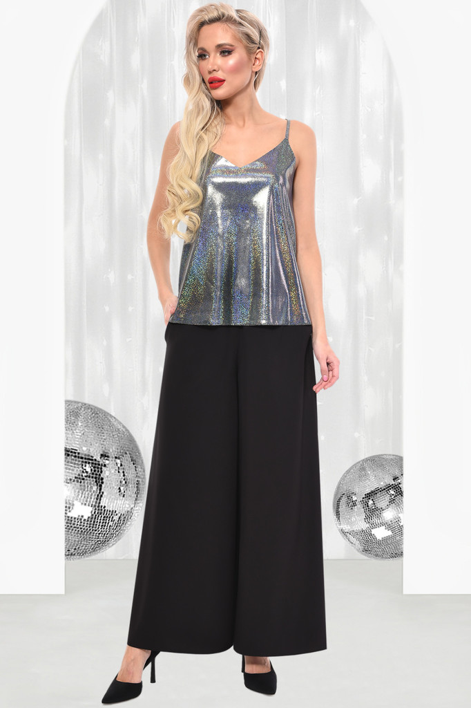 Широкие брюки-палаццо с выразительным элегантным силуэтом – безусловный тренд в повседневной жизни.Модель со средней посадкой, и удобными боковыми карманами. Особенности покроя – штанины расширяются о... Показать описаниет ягодиц. Артикул: бр16001 Цвет: Черный Ткань: Костюмная Состав: Полиэстер 96%, Эластан 4% Длина изделия: 105см Рекомендуемый уход за изделием деликатная или ручная стирка на 30 градусах.Нельзя отбеливать, утюжить с изнанки. Цвет изделия на фотографии может отличаться от фактического из-за настройки монитора. Модель: Рост 170, Размер 44.